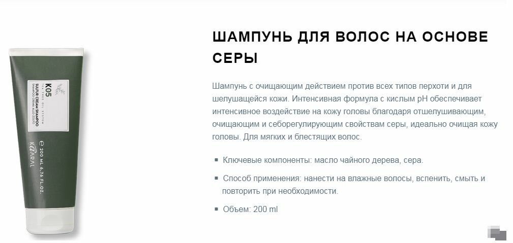 | Коллекция | KAARAL KO5 Sulphur Cream Shampoo |