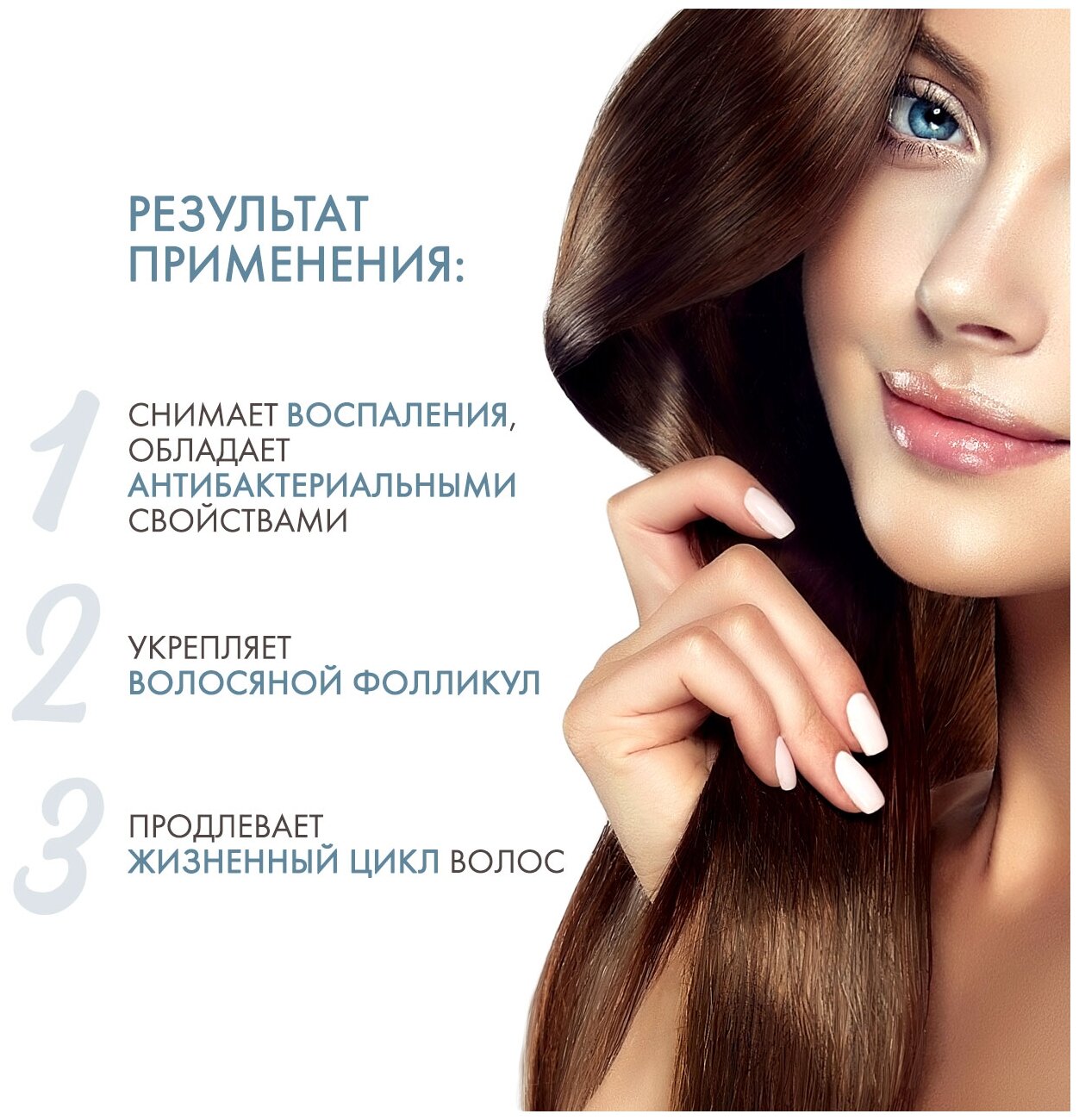 | Применение | нанесите после шампуня на влажную кожу по проборам - 1 капля на 1 кв. см. После нанесения, в течение 5 минут, обязателен массаж кожи головы. Не смывать. Применяйте 2 раза в неделю на протяжении 6 недель |