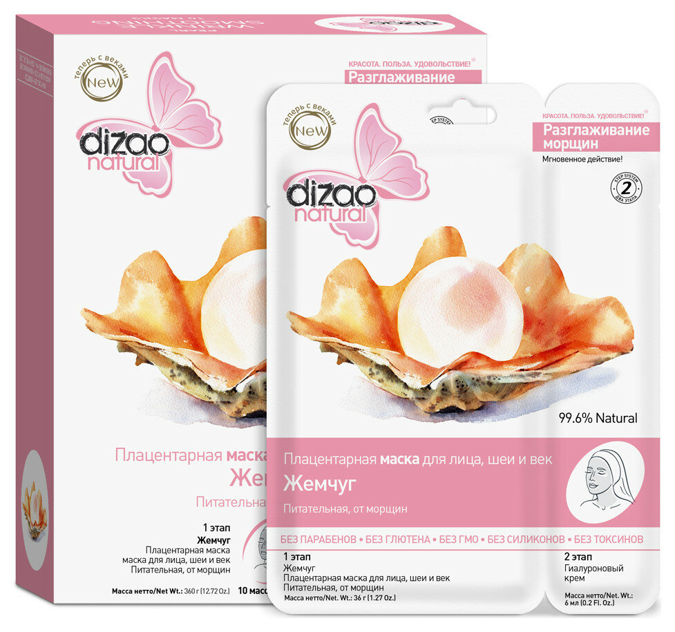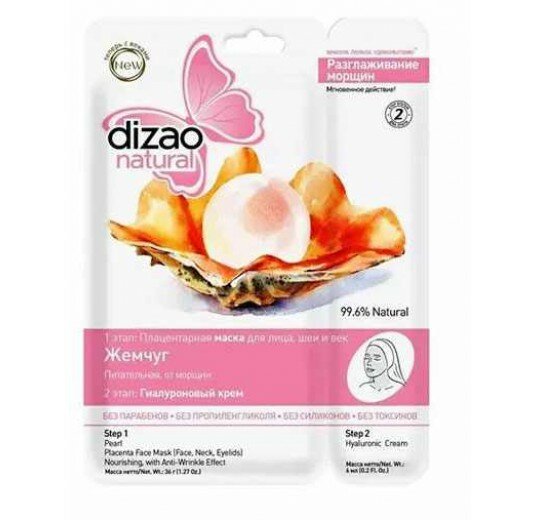 | Полное описание | Классические маски Dizao Natural содержат 99, 6% натуральных природных ингредиентов, а их эффект сравним с посещением косметического салона. Маски классической серии двухэтапные и содержат гиалуроновый крем с гиалуроновой кислотой, увлажняющие кожу и усиливающие эффект маски. 1 этап: Плацентарная маска для лица и шеи. Питательная от морщин Как действует маска? разглаживает морщины повышает иммунные способности кожи увлажняет и питает улучшает обмен веществ осветляет пигментные пятна В результате применения маски: кожа приобретает упругость, эластичность, матовость и шелковистость. 2 этап |