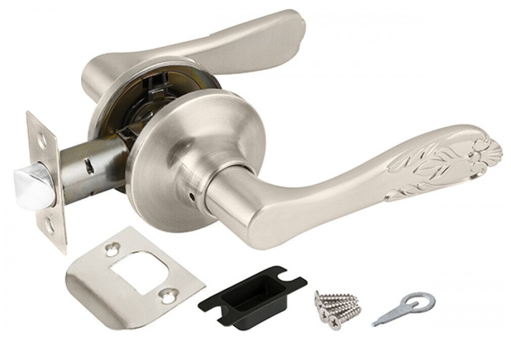 Комплект дверных ручек с защелкой (KNOB) ''Punto'' предназначен для установки в межкомнатные двери толщиной 35-45 мм. Подходит для дверей правого и левого открывания. Гальваническое покрытие прошло тест на устойчивость к коррозии в соляном тумане и соответствует 1 классу ГОСТ. Ресурс работы ручек-защелок более 150 000 циклов открывания/закрывания, что гарантирует безотказную работу двери более чем на 15 лет. Бэксет защелки регулируется - 60/70 мм. Модификация: без фиксатора. Цвет: матовый никель. Комплектация: защелка, ответная планка с декоративной заглушкой, дверные ручки, крепежная фурнитура, инструкция по установке.