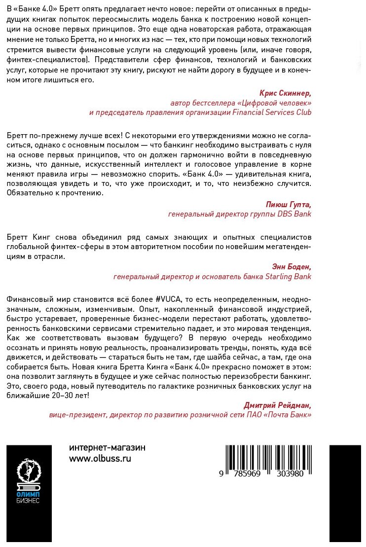 Банк 4.0. Новая финансовая реальность (Бретт Кинг); Олимп-Бизнес, 2018