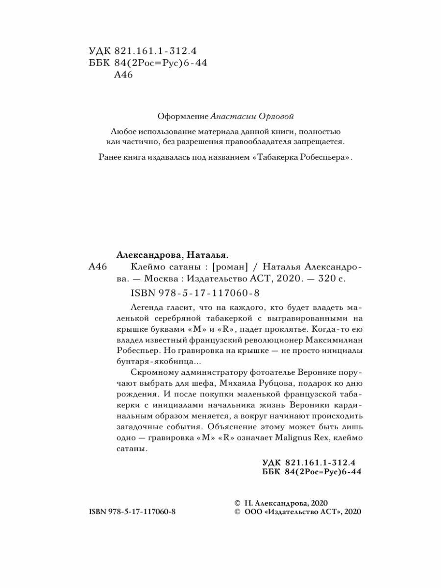 Книга: Клеймо сатаны (Наталья Александрова); Издательство АСТ, 2020