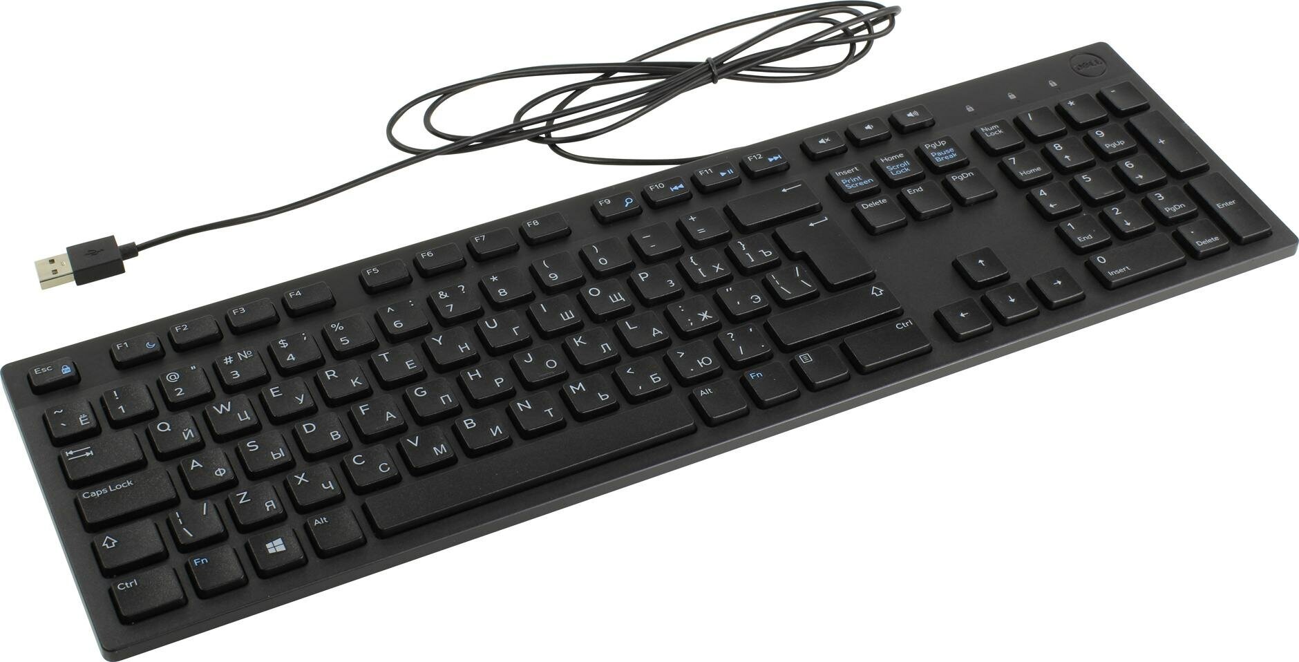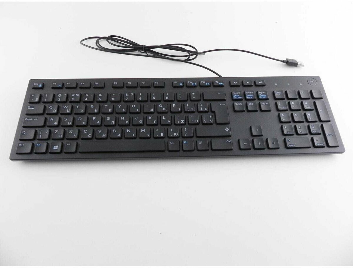 Полноразмерная клавиатура DELL — удобное решение для дома и офиса. Полноразмерная модель оснащена цифровым блоком клавиш и дополнительными хоткеями, которые доступны при использовании кнопки-модификатора Fn. С ней печать станет настоящим удовольствием, причем безвредным для пользователя. Тихий механизм кнопок поможет не отвлекать окружающих при интенсивной работе. Клавиатура DELL KB216 отличается компактными габаритами, благодаря чему ей легче подобрать место на столе и найти удобное положение для рук. За счет хоткеев можно существенно ускорить работу с файлами мультимедиа — пауза, перемотка и регулятор громкости доступны в любой момент. Большой Enter и урезанный левый Shift понравятся любителям клавиатур с классической раскладкой клавиш.