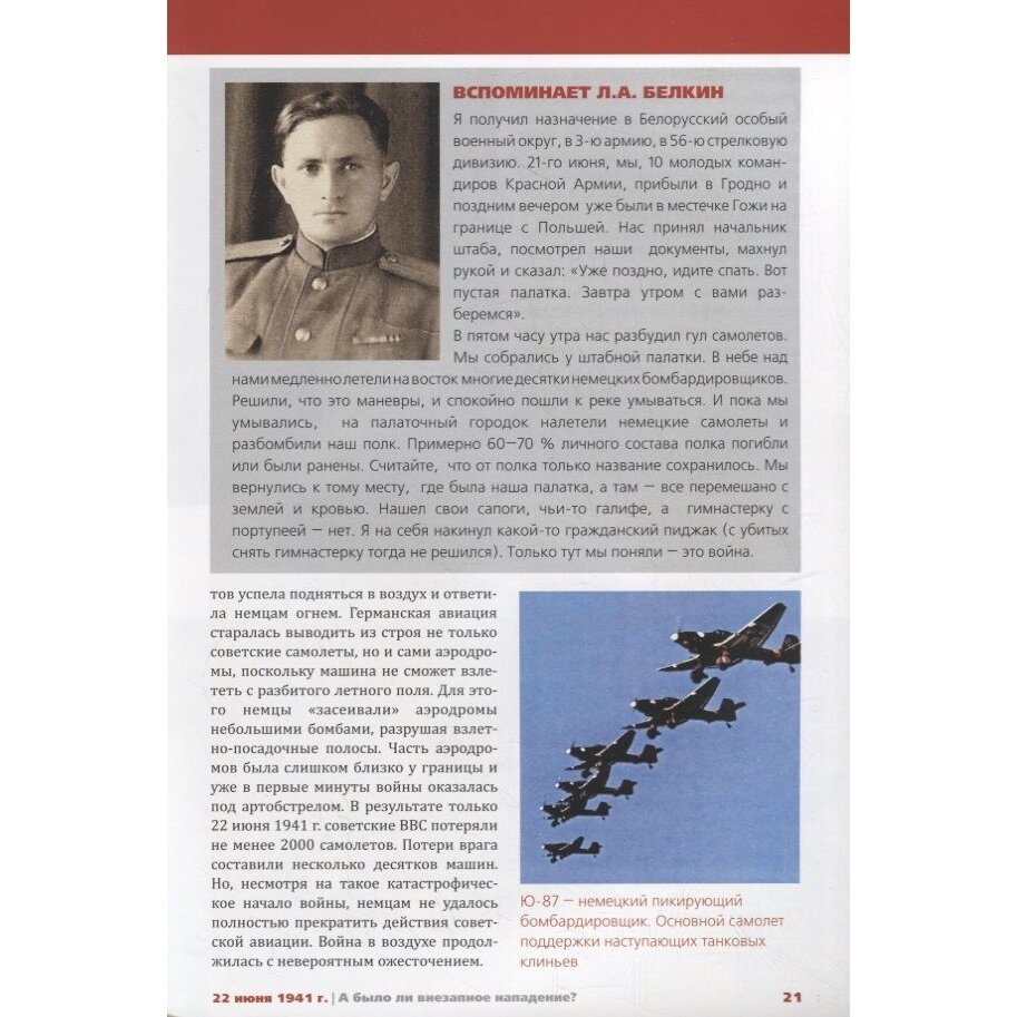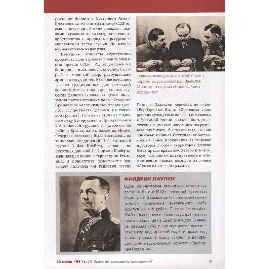 Уникальная книжная коллекция "Память Победы. Люди, события, битвы", приуроченная к 75-летию Победы в Великой Отечественной войне, адресована молодому поколению и всем интересующимся славным прошлым нашей страны. Выпуски серии рассказывают о знаменитых полководцах, крупнейших сражениях и различных фактах и явлениях Великой Отечественной войны. В доступной и занимательной форме рассказывается о сложнейшем и героическом периоде в истории нашей страны. Уникальные фотографии, рисунки и инфографика прекрасно дополняют текст и улучшают его восприятие. В первом выпуске коллекции читайте о тайнах 22 июня 1941 г. Было ли немецкое нападение внезапным?