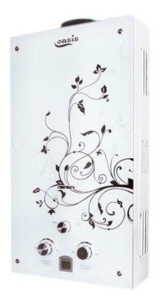 Oasis Glass – стильный газовый проточный водонагреватель для горячего водоснабжения. Принцип его работы достаточно прост: вода проходит через теплообменник прибора и моментально нагревается от сгорающего газа, поступая к потребителю уже горячей. Oasis подходит для любых квартир и частных домов, оборудованных дымоходом. Автоматический розжиг от батареек помогает избавиться от неудобств при неожиданном отключении электричества. Работа прибора осуществляется на природном газе. Отсутствие постоянно горящего запальника и специальный переключатель "Зима-лето" позволяют экономить около 70 кубических метров газа в год. Отличительной особенностью данной модели является стеклянная поверхность и рисунок
