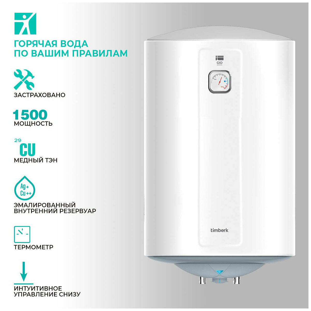 Электрические накопительные водонагреватели Timberk Gio отличает высокий уровень энергоэффективности, благодаря слою высококачественной теплоизоляции, равномерно "без пустот" заполняющему внутреннее пространство между корпусом и внутренним резервуаром. Реальное снижение теплопотерь, благодаря полному отсутствию "тепловых мостиков". Позиция оптимального положения терморегулятора, которая соответствует наиболее комфортной температуре нагрева воды в баке (+58° (±2°С)), а также наиболее эффективному режиму расхода электроэнергии. Бойлер прослужит действительно долго благодаря двойному слою стеклофарфоровой эмали внутреннего резервуара, нанесенной сухим способом. Увеличенный магниевый анод защищает внутренние резервуары от коррозии и уменьшает количество образующейся накипи. Медный нагревательный элемент, благодаря специальному защитному покрытию имеет увеличенный срок службы