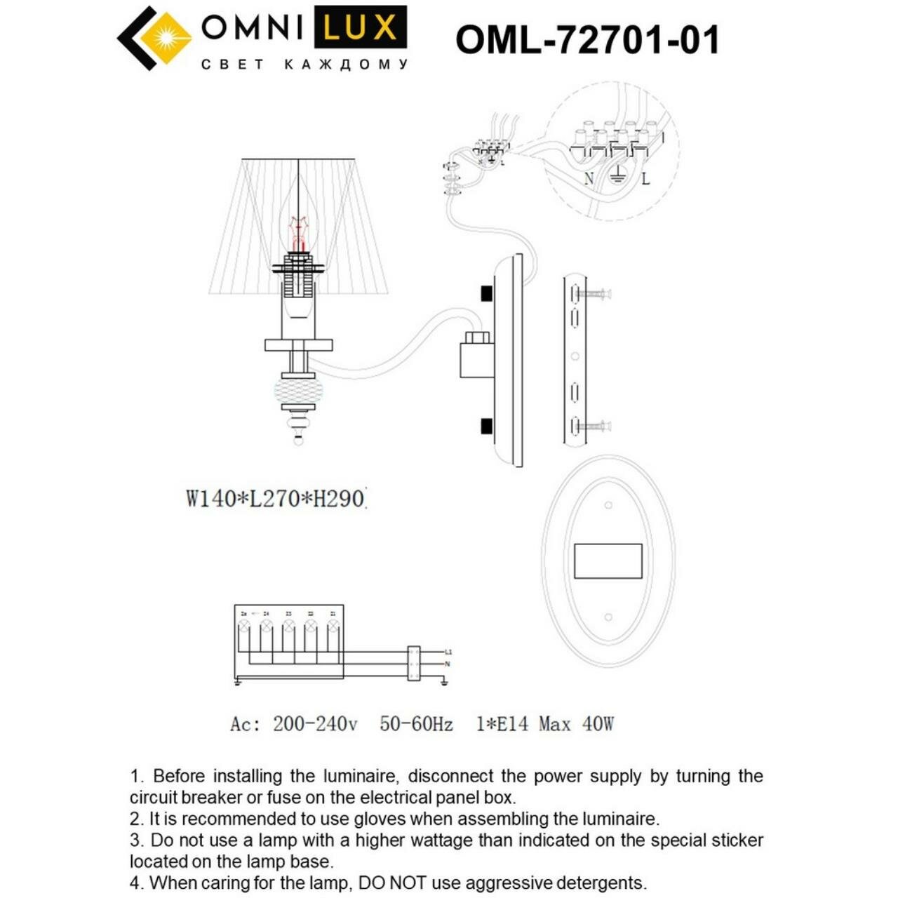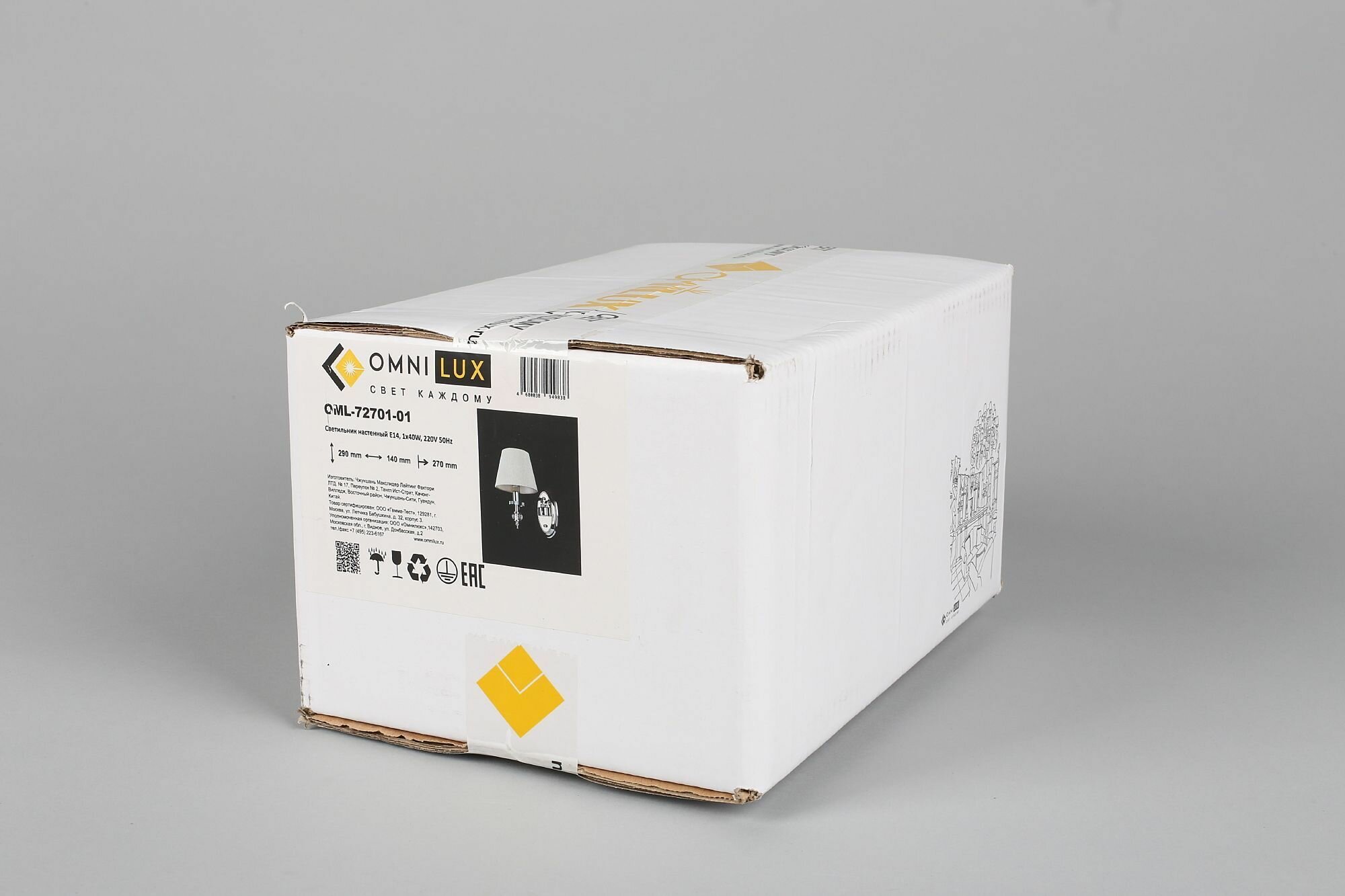 Бра OML-72701-01 - продукт известной компании Omnilux (Италия). Имеет максимальную мощность 40 Вт, освещает площадь до 3 кв. м. Отлично подойдет для таких мест, как гостиная, прихожая и коридор, спальня. Впишется в интерьеры следующих стилей: классический.