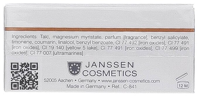 | Полное наименование | Janssen Janssen Специальная пудра для фиксации макияжа 30 гр Make up |