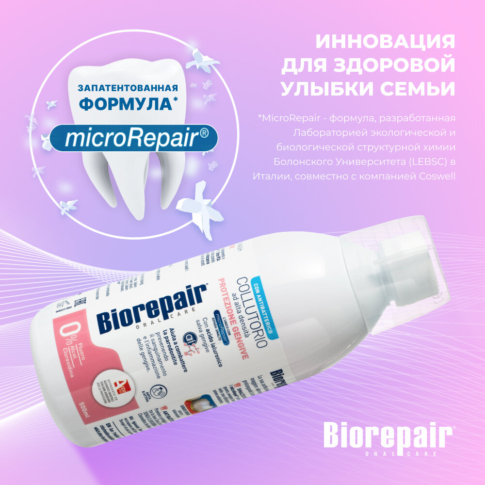 Продукты Biorepair® не содержат хлоргексидин, спирт и его производные и не вызывают раздражение слизистой оболочки полости рта.