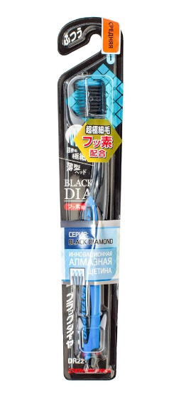 Зубная щетка Black Diamond качественно очищает зубы за счет сочетания двух новых видов щетинок: фторированных ультратонких щетинок алмазной формы и черных щетинок с добавлением платиновой коллоидной керамики.