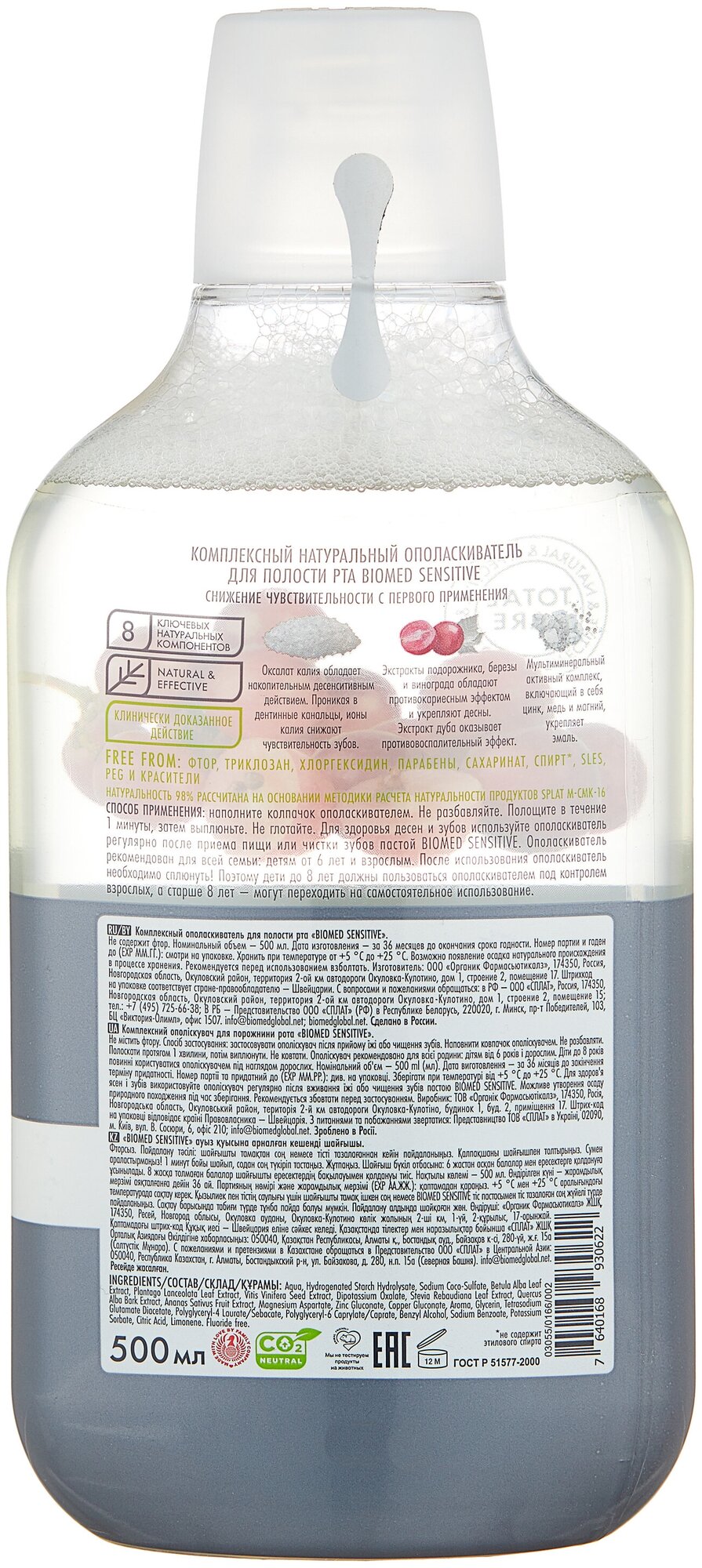 Комплексный натуральный ополаскиватель Biomed Sensitive - Снижение чувствительности с первого применения. Cнижает чувствительность зубов, обладает противокариесным эффектом и укрепляет десны. Оказывает противовоспалительный эффект и укрепляет эмаль. На 98% натуральный и содержит 8 ключевых натуральных компонентов, таких как Экстракты подорожника, березы и винограда, экстракт дуба, мультиминеральный активный комплекс, включающий в себя цинк, медь и магний и другие. Alcohol Free.
