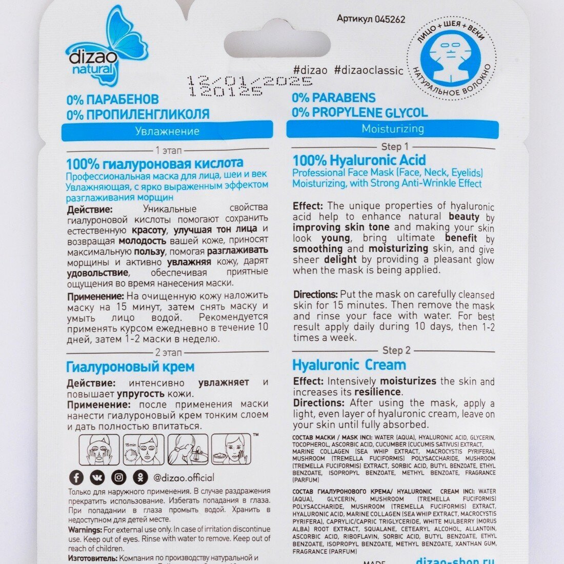 Dizao Двухэтапная маска «100% Гиалуроновая кислота» 1 шт (Dizao ) (ЭХ9923035)