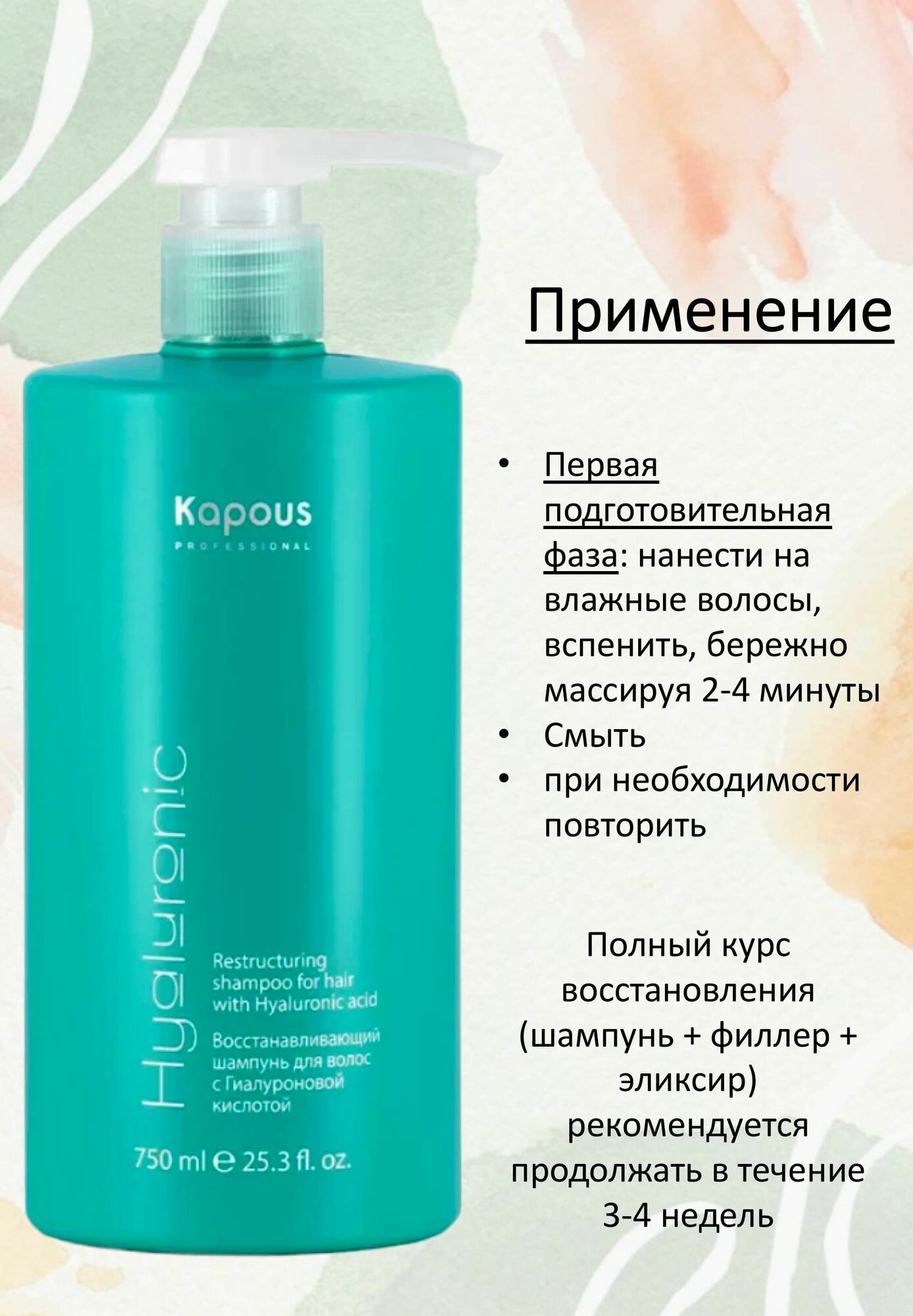Восстанавливающий шампунь с гиалуроновой кислотой создан специально для интенсивного восстановления волос.