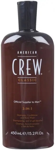 American Crew Classic 3 in 1 универсальное средство - шампунь, кондиционер и гель для душа 3 в 1, которое идеально сочетает в себе свойства для очищения волос, кожи головы и тела. Не нарушает баланс кожи, одинаково хорошо подходит как для мытья головы, так и для мытья тела, оказывает на кожу увлажняющее и тонизирующее действие, прекрасно очищает волосы от всех типов загрязнений. В состав данного продукта входят компоненты способствующие хорошему увлажнению кожи и придания ей отличного аромата.