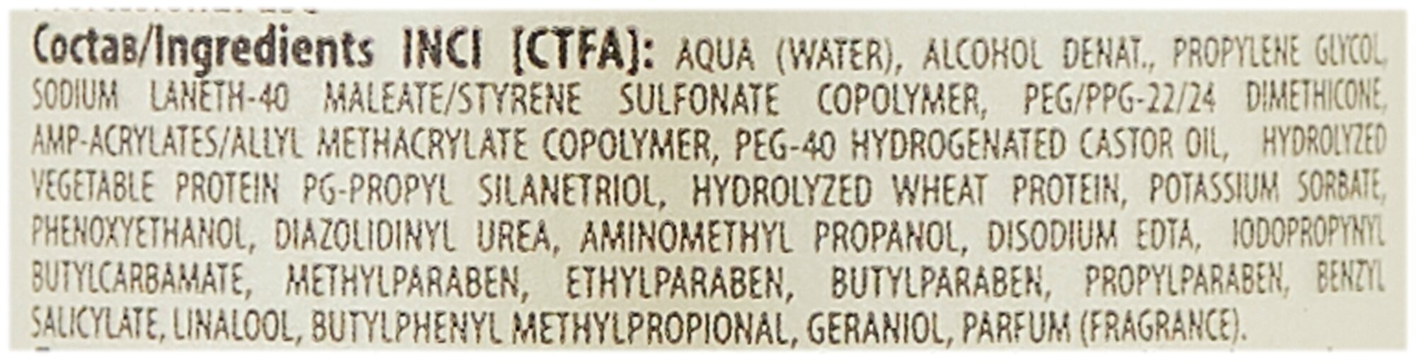 Прямые и гладкие волосы один из наиболее популярных трендов. Но многие не хотят выпрямлять волосы с помощью перманентных препаратов, предпочитая временный эффект. Ровные, гладкие и блестящие волосы это признаки здоровых и живых волос, но применение выпрямляющих «утюжков» может иметь негативный результат, так как волосы перегреваются, иссушаются и обламываются. Несмываемый спрей-защита, одновременно функционирующий как средство для укладки, обеспечивает лёгкую фиксацию волос, сохраняя их естественное движение. Незаменим в создании гладких причёсок и распрямлении вьющихся волос. Идеальное средство для бережного ухода за волосами во время теплового воздействия фена, щипцов или «утюжков», для достижения эффекта прямых волос, сглаживает поверхность волоса, облегчая скольжение и усиливая эффект воздействия «утюжков». Благодаря содержанию шелковичных протеинов и гидролизованных протеинов пшеницы придаёт объём и силу, поддерживает гидролипидный баланс волос, предотвращает выцветание окрашенных волос. Оказывает кондиционирующее действие, придаёт гладкость и эластичность, выпрямляет вьющиеся волосы, а так же дисциплинирует толстые и жёсткие. Сохраняет эффект шелковистой выглаженности до следующего мытья головы даже при высокой влажности воздуха. Предотвращает статический эффект. Подходит для ежедневных укладок.