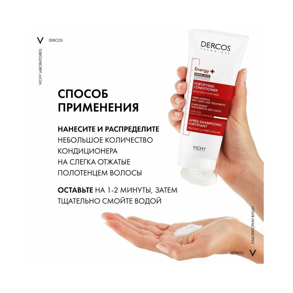 | Способ применения | Нанесите и распределите небольшое количество кондиционера на слегка отжатые полотенцем волосы. Оставьте на 1-2 минуты, затем тщательно смойте водой. Используйте после Тонизирующего шампуня Dercos. |
