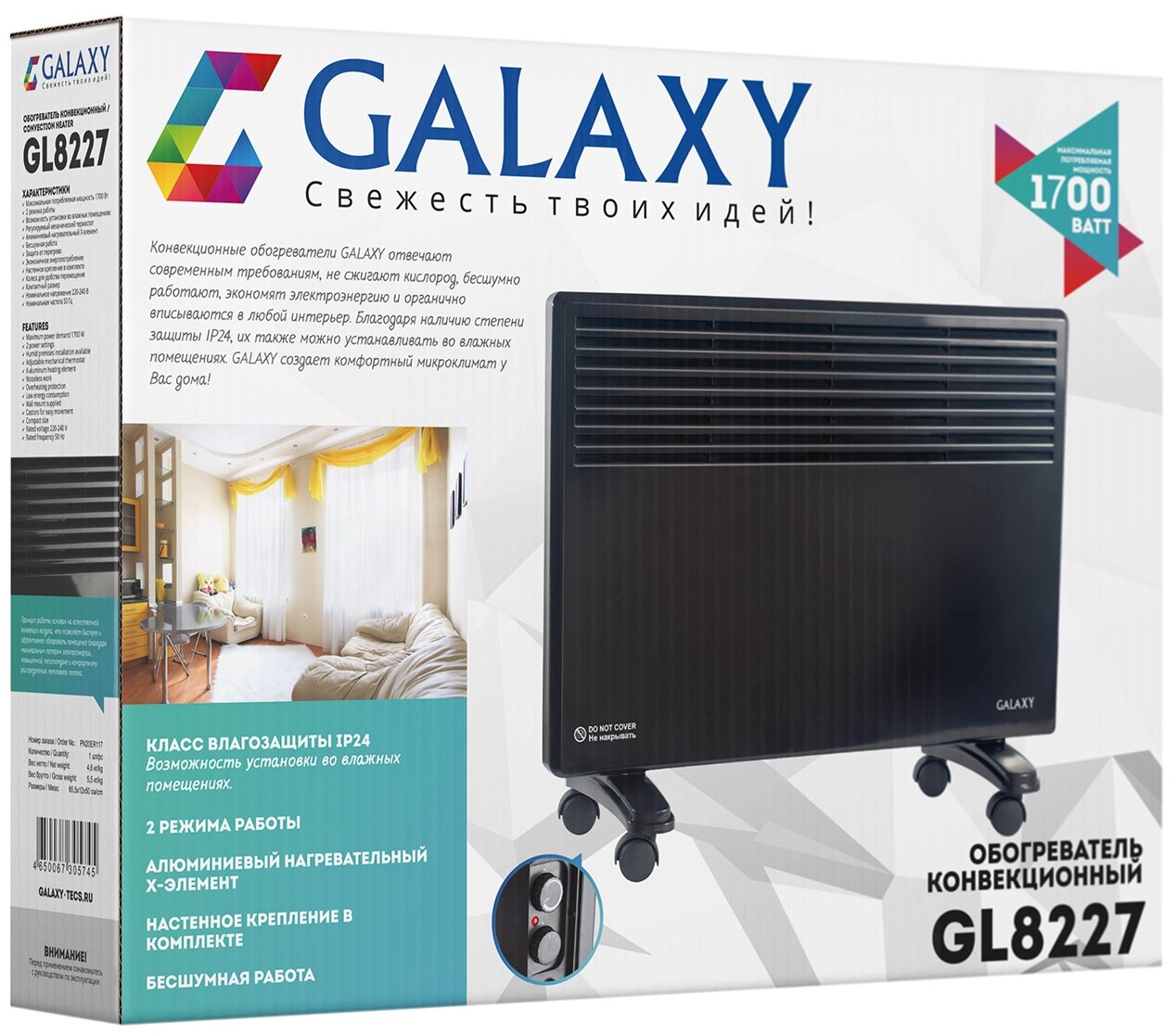 - СКИДКА 30% Galaxy GL 8227 Обогреватель конвекционный мощность 1700 Вт