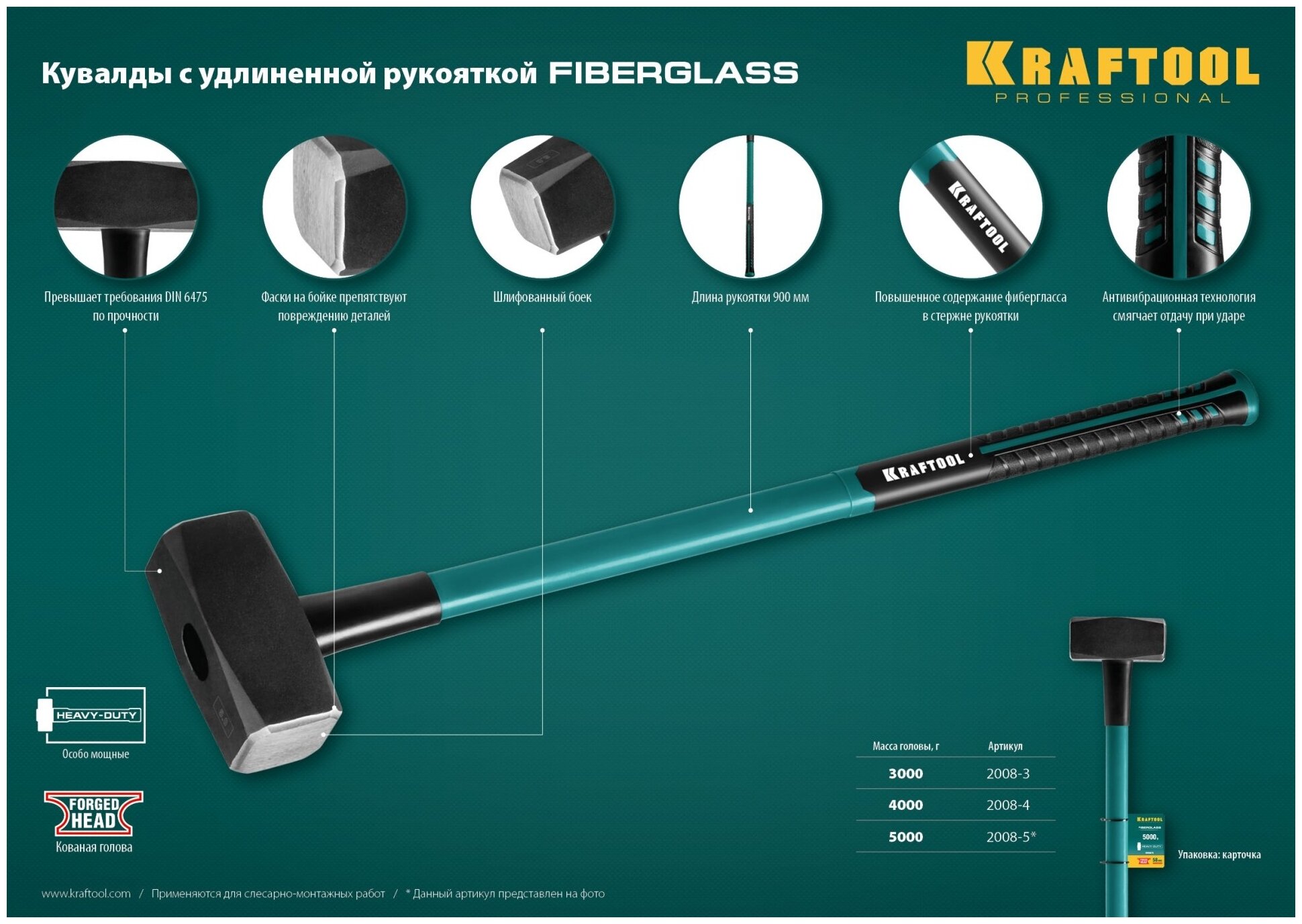 KRAFTOOL Fiberglass 5 кг, Кувалда с удлинённой рукояткой (2008-5)