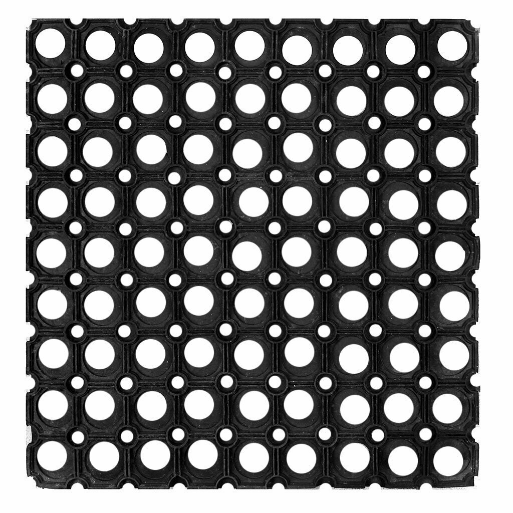 Коврик придверный РИНГО-МАТ - резиновое грязезащитное покрытие с открытой ячеистой структурой, которая обеспечивает эффективную очистку подошв обуви и предотвращает травмоопасные ситуации на скользком полу.