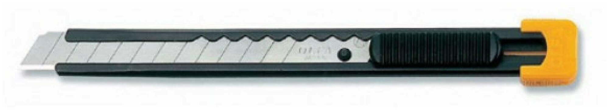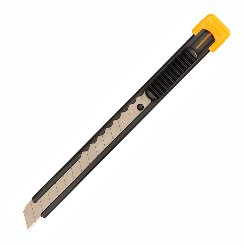 | Прочие особенности и свойства | Нож OLFA 9 мм OL-S оснащен полуавтоматическим механизмом фиксации лезвия. Предусмотрена пластиковая клипса для отламывания израсходованных сегментов лезвия. Нож применяется для срезания монтажной пены, а также для резания обоев, картона и пленки |
