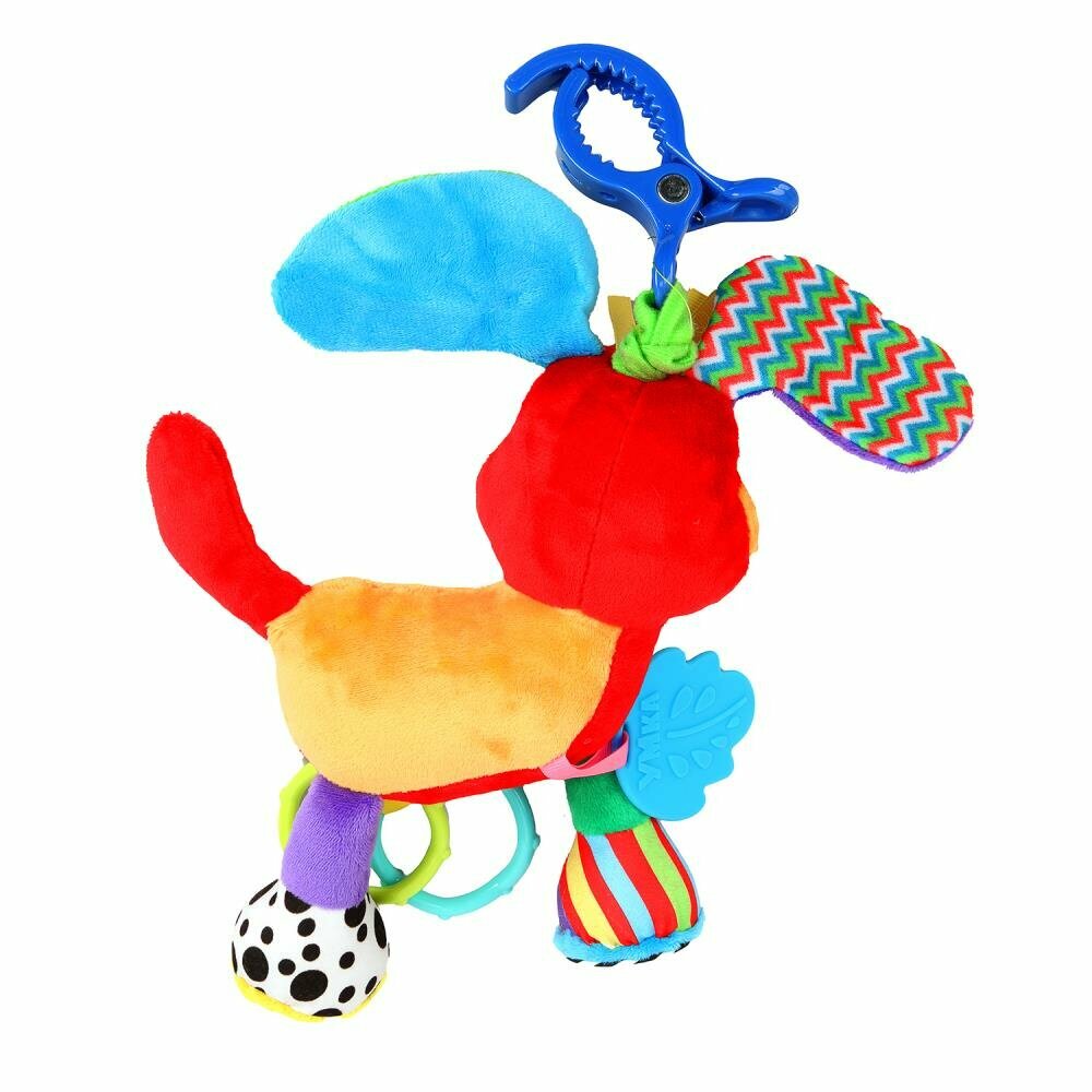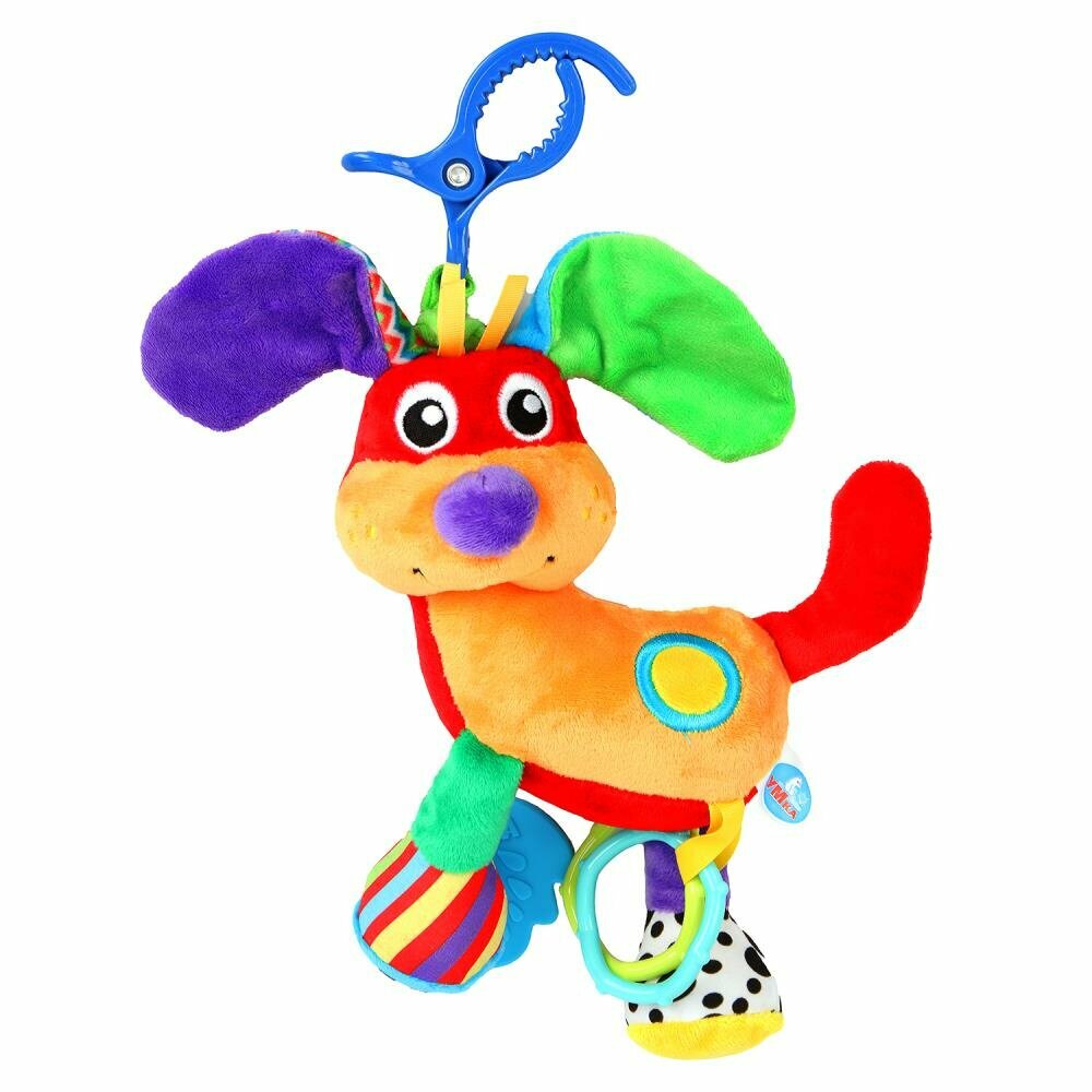 Подвеска с вибрацией «Собачка» ТМ «УМка» разработана специально для малышей.Игрушка выполнена в ярких цветах из очень мягкого и гипоаллергенного материала. Благодаря клипсе игрушку удобно крепить к кроватке, коляске или прикрепить в любом другом месте. Малыш будет в восторге от очаровательного мягкого друга.Функционал:— механизм вибрации: игрушку можно оттянуть от клипсы и она с вибрацией вернётся в исходное положение— удобное крепление на клипсу— подвижные элементы (2 геометрические фигуры разной формы и цвета)Игра с игрушкой «Собачка» развивает:— слуховое восприятие— тактильные навыки— моторику — цветовосприятиеРастите и развивайтесь вместе игрушками ТМ «УМка».Одобрено Институтом педиатрии России и Центром здоровья детей. Размер игрушки: 23х24х9 см.Материал: пластмасса + текстиль.Рекомендовано детям раннего ясельного возраста.