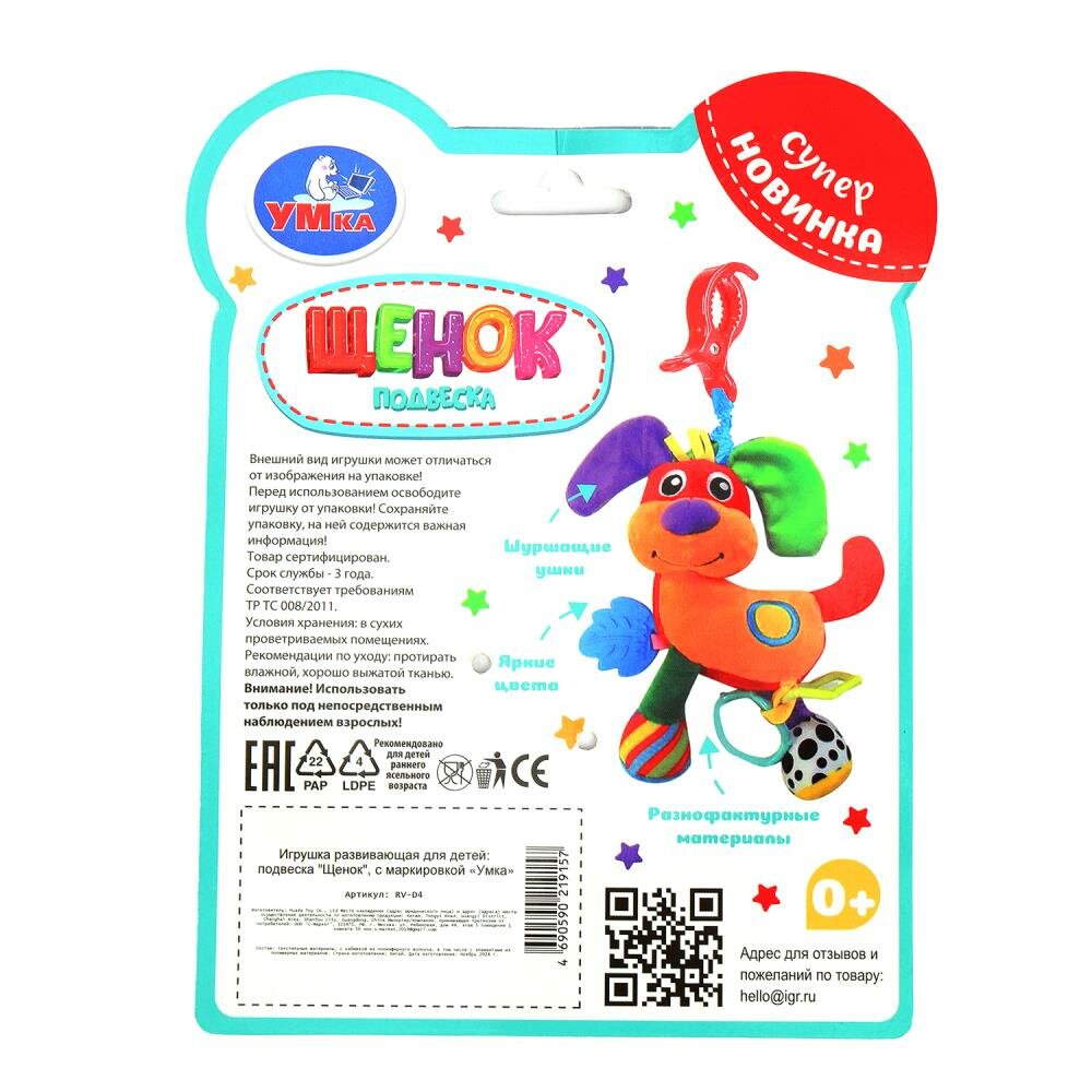 Сервис сравнения цен СкидкаГИД предлагает сравнить цены на товар «Подвеска с вибрацией Умка Собачка 23 х 24 х 9 см (RV-D)»