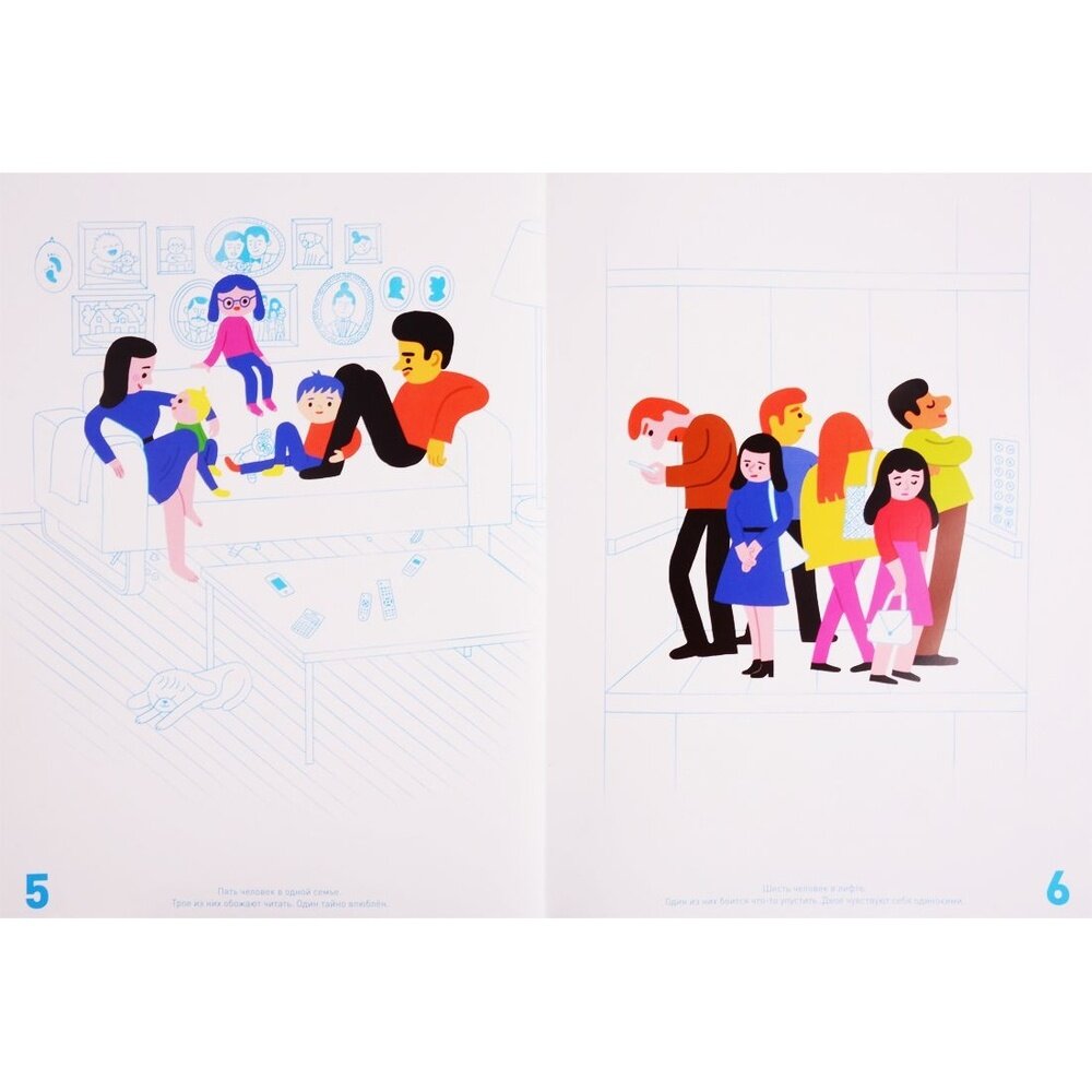 Читатели считают людей в книжке и на нашей планете: от одного до 7.5 миллиардов. Ни один человек не появляется в книжке просто так, каждый - часть чего-то большего: семьи, блошиного рынка или толпы в аэропорты. И все как-то связаны между собой и с главными героями.