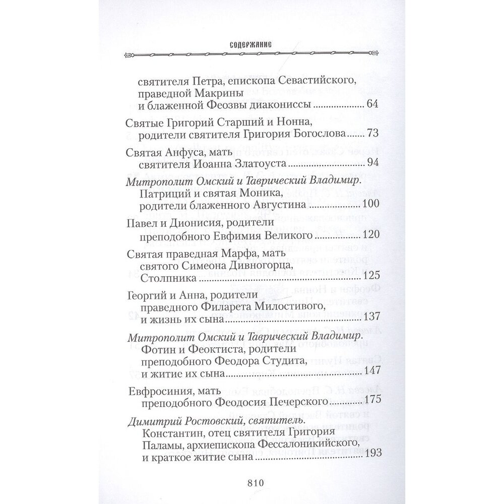 В самой книге основной акцент делается на жизнь именно родителей наших святых, но также расписывается и житие самого святого. К примеру читая о родителях Сергия Радонежского, о нём тоже многое написано. В основу рассказов легли канонические тексты, отсюда и жанровое соответствие со всеми вытекающими благочестивыми оборотами и прихрамываниями логики. Если вас это не смущает, останетесь довольны. В книге рассказы и о древних временах, и о наших современниках, в т.ч. ещё не канонизированных.