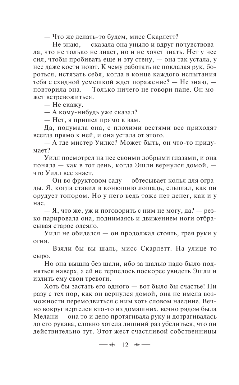 Одна из моих самых любимых книг. Сильная женщина Скарлетт, выжившая в войну и сумевшая построить карьеру, остается одна с разбитым сердцем, потеряв в финале и дочь, и подругу, и любовь. Она разбита, раздавлена, но верит, что завтра будет новый день, и она еще сможет вернуть свою любовь.