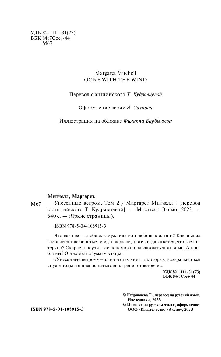 Книга: Унесенные ветром. Том 2 (Маргарет Митчелл); Эксмо, Редакция 1, 2021