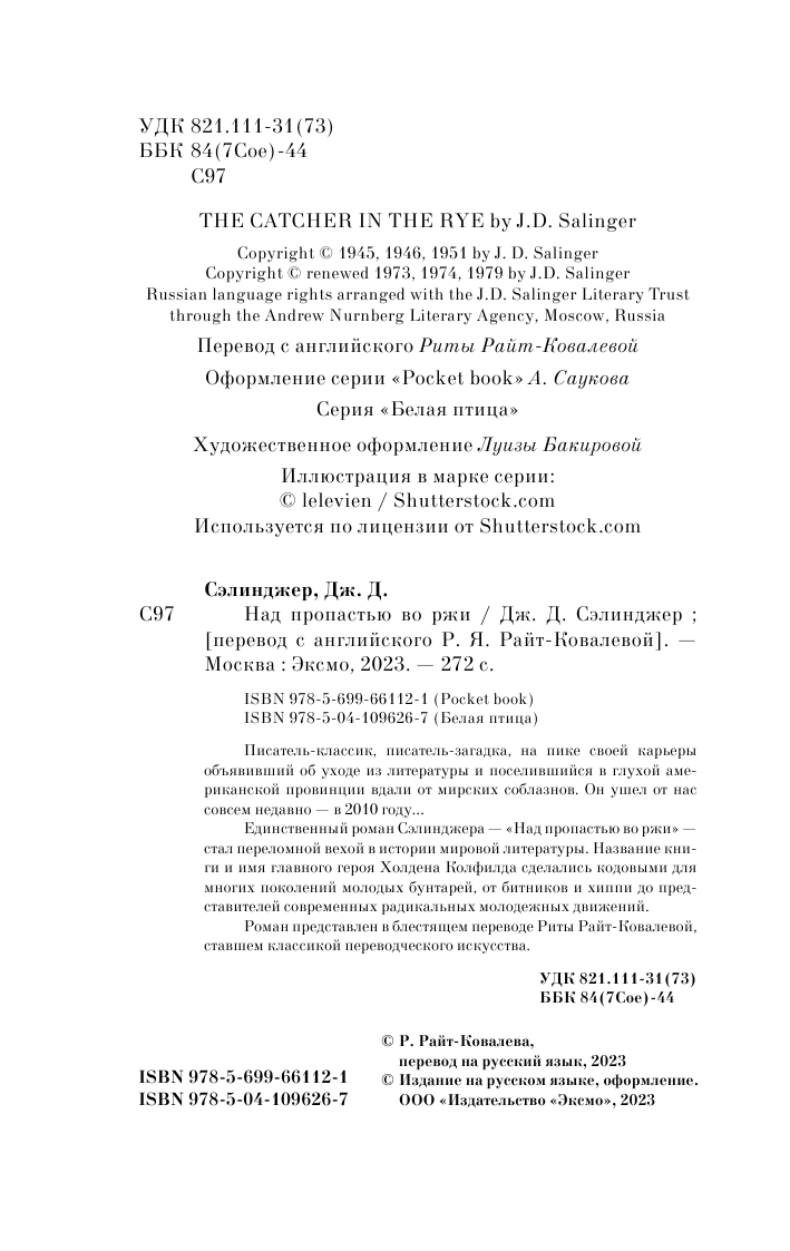 Книга: Над пропастью во ржи (Сэлинджер Джером Дэвид); Эксмо, Редакция 1, 2021