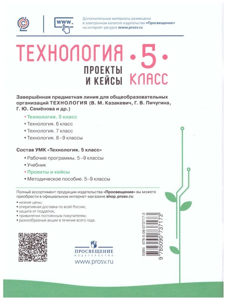 Технология. 5 класс. Проекты и кейсы (Казакевич Владимир Михайлович, Семенова Галина Юрьевна, Пичугина Г. В.); Просвещение, 2020