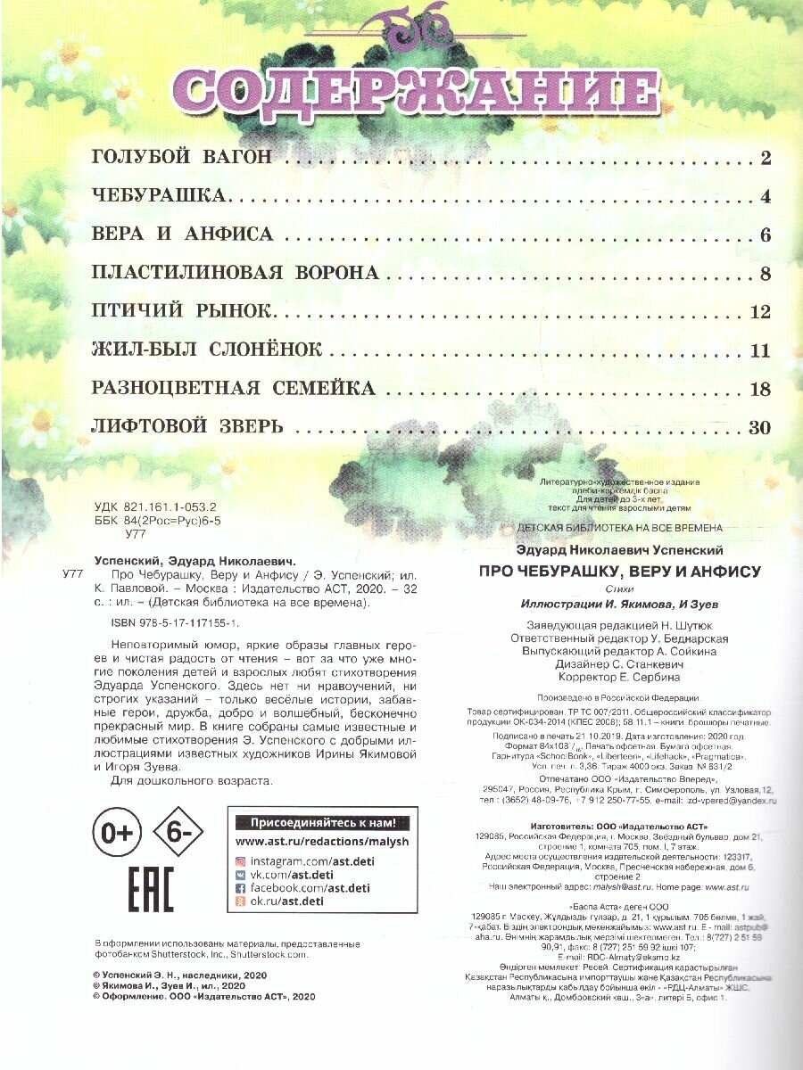 Сервис сравнения цен СкидкаГИД предлагает сравнить цены на товар «Книга: Про Чебурашку Веру и Анфису (Успенский Эдуард Николаевич); ООО "Издательство Астрель", 2019»
