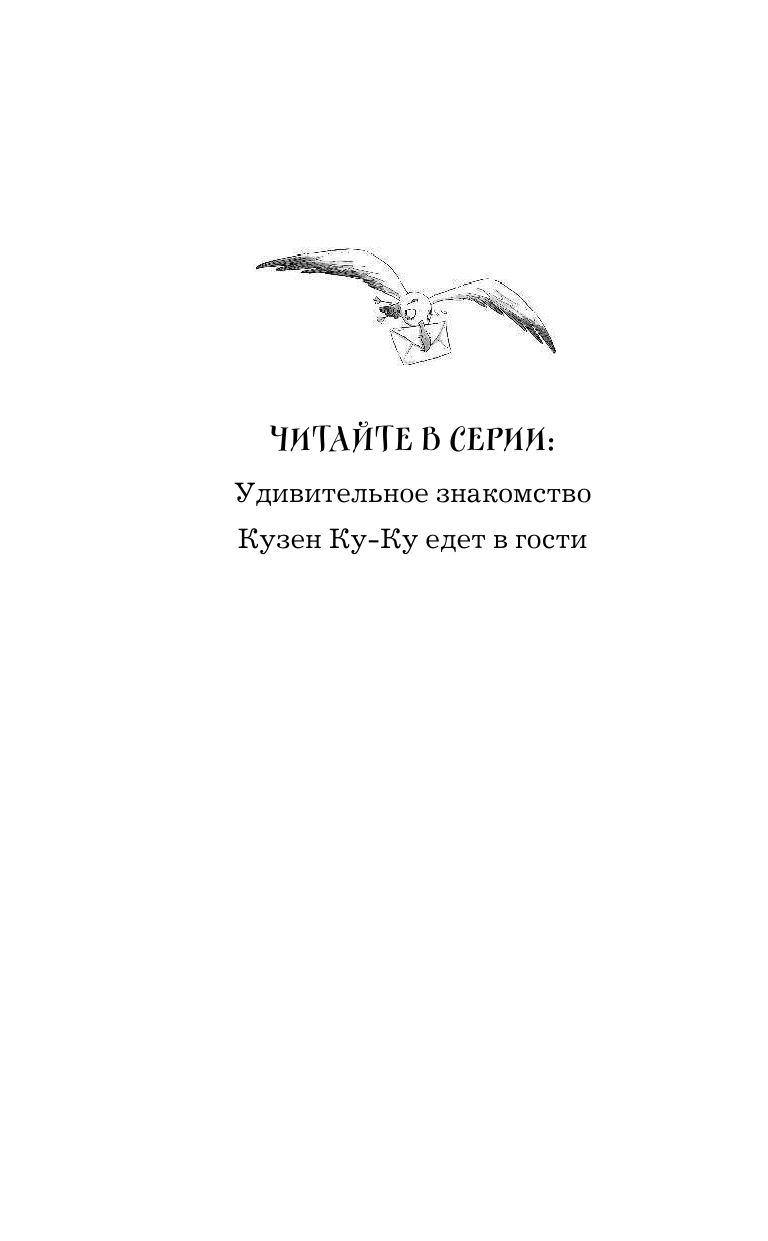 Но однажды Озорная Ведьма подружилась с Джеком, новым коробочником, и его мамой, ведь она печёт самые вкусные кексы на свете! Озорная Ведьма даже стала учиться вместе с Джеком в школе. И как-то раз она получила невероятное письмо! Оказывается, к ней в гости едет кузен по имени Арчи Ку-Ку! О, Озорная Ведьма не упадёт в грязь лицом! Пора навести порядок в старом саду и научить его обитателей (наглых птиц то есть) хорошим манерам. А с этим как раз поможет Джек. Но кто бы мог подумать, что Арчи Ку-Ку хранит мрачную тайну?! Кузен Ку-Ку - совсем не тот, за кого себя выдаёт!