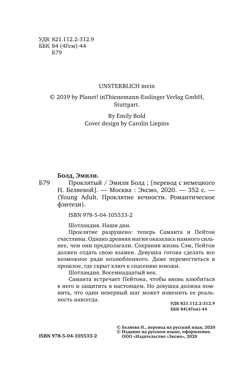 | Серия | Young Adult. Проклятие вечности. Романтическое фэнтези |