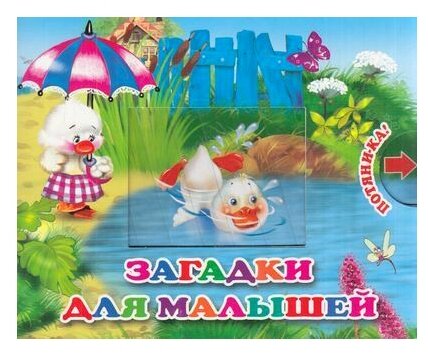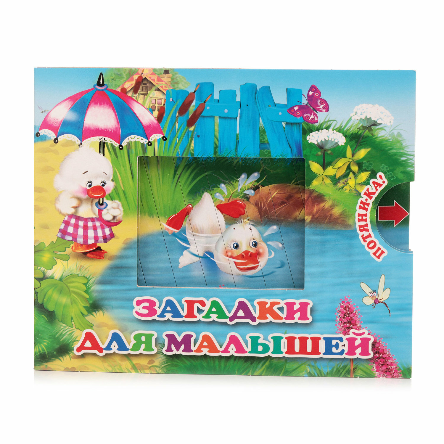 Вашему вниманию предлагается книга серии "Потяни-ка!" "Загадки для малышей". При движении шторки в окне меняется картинка.