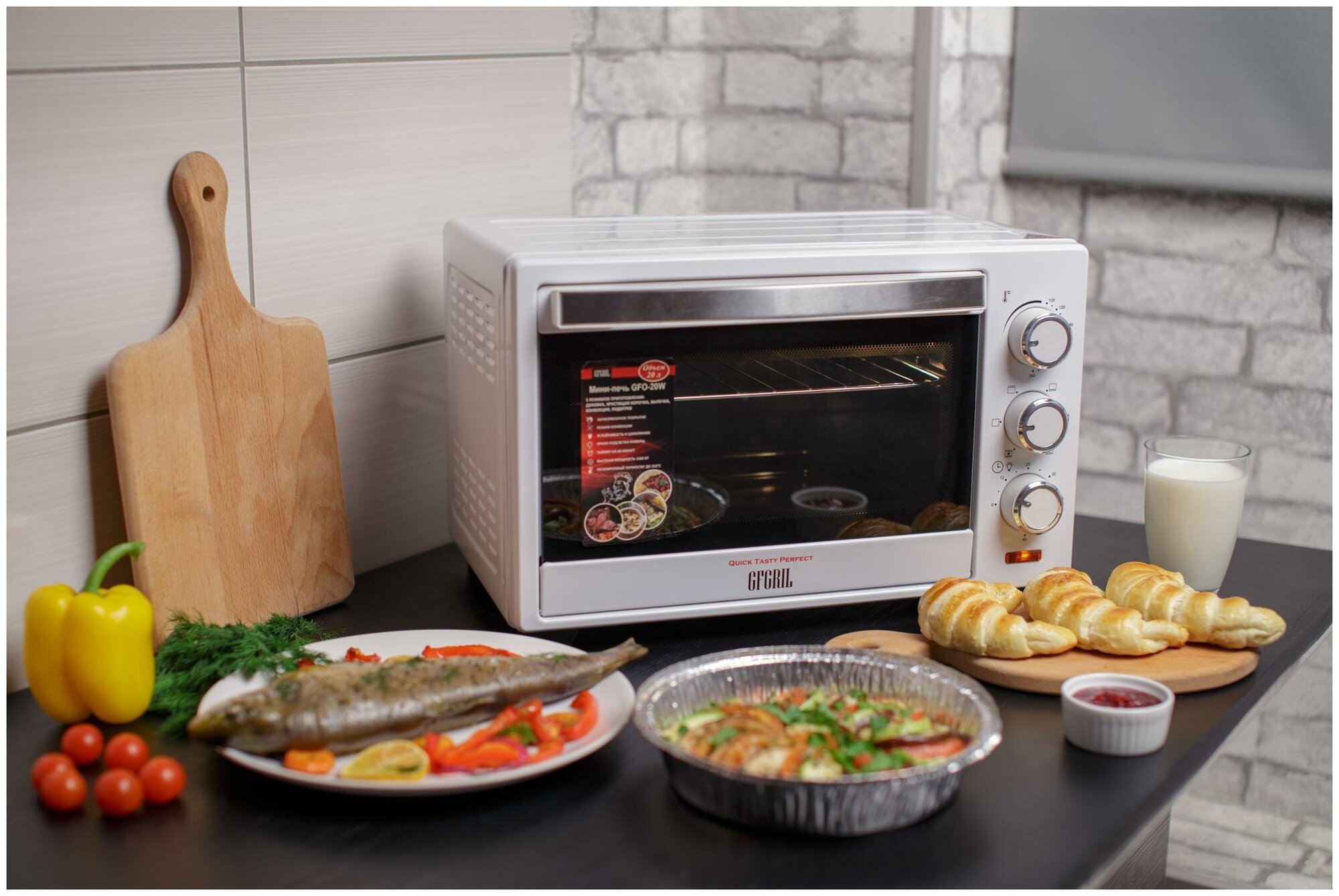 - Многофункциональная мини-печь GFGRIL GFO-20W, 20л, конвекция, антипригарное покрытие (б/c)