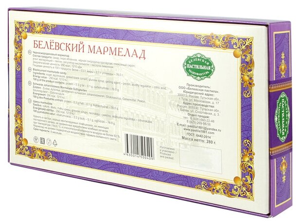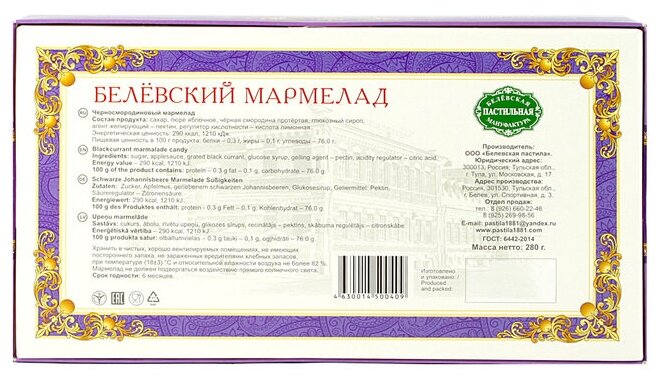 Мармелад Белевская пастильная мануфактура Черносмородиновый 280г Белевская пастила