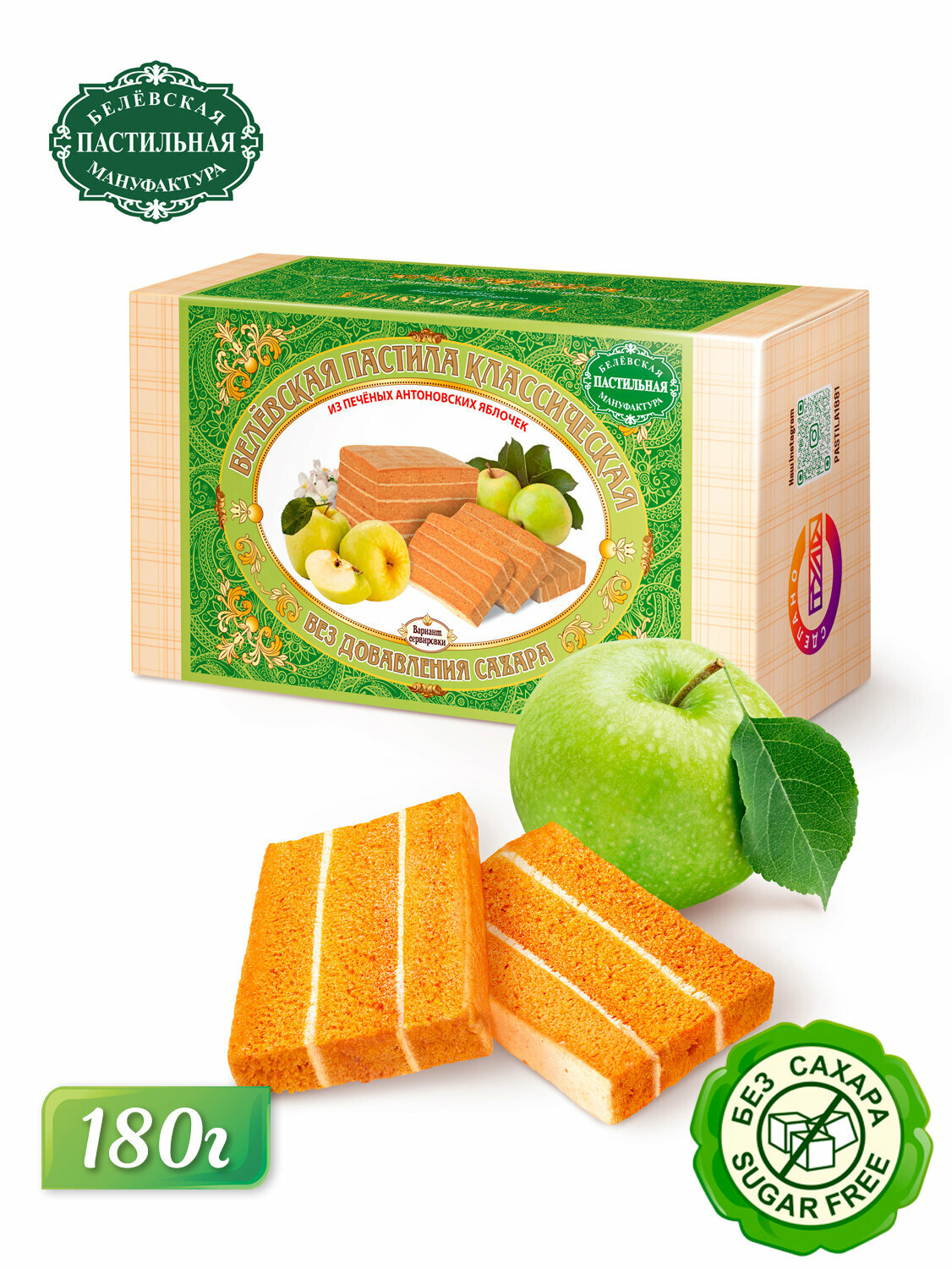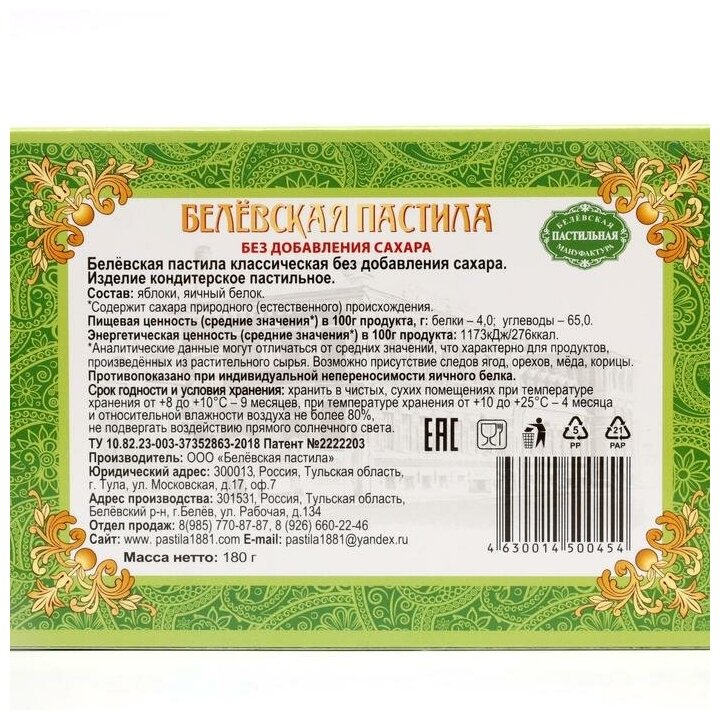 Пастила Белевская пастильная мануфактура Классическая без сахара 180г Белевская пастила