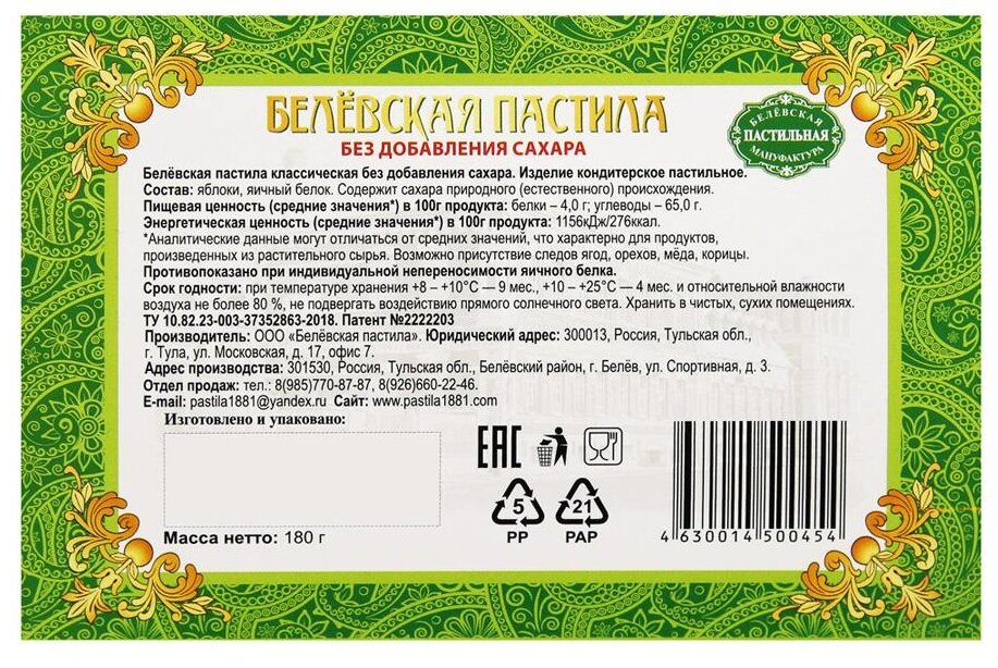 Производитель: Белевская пастила