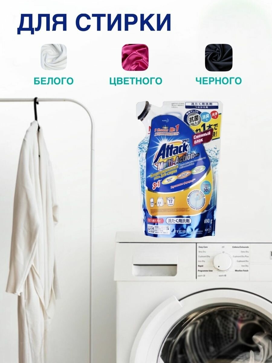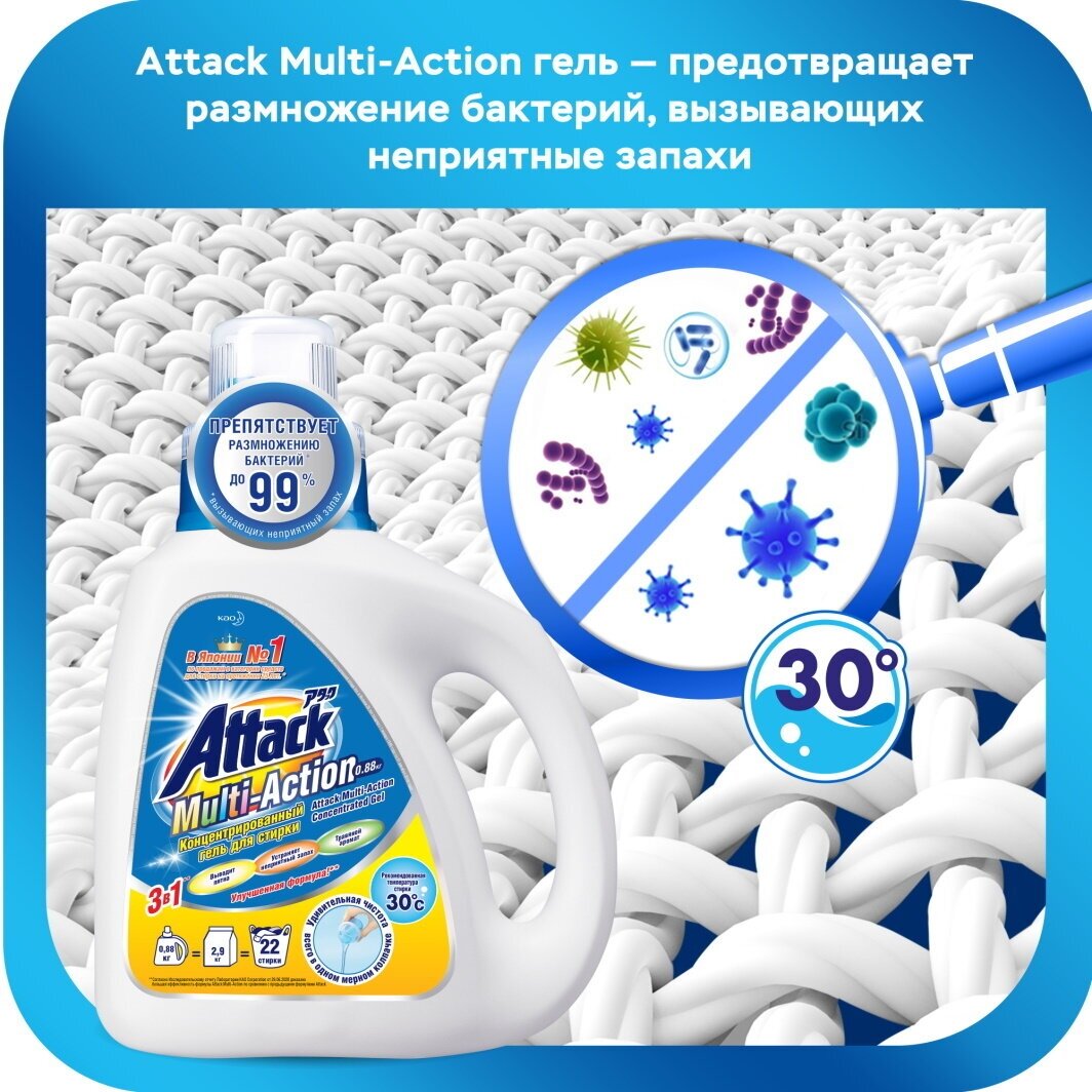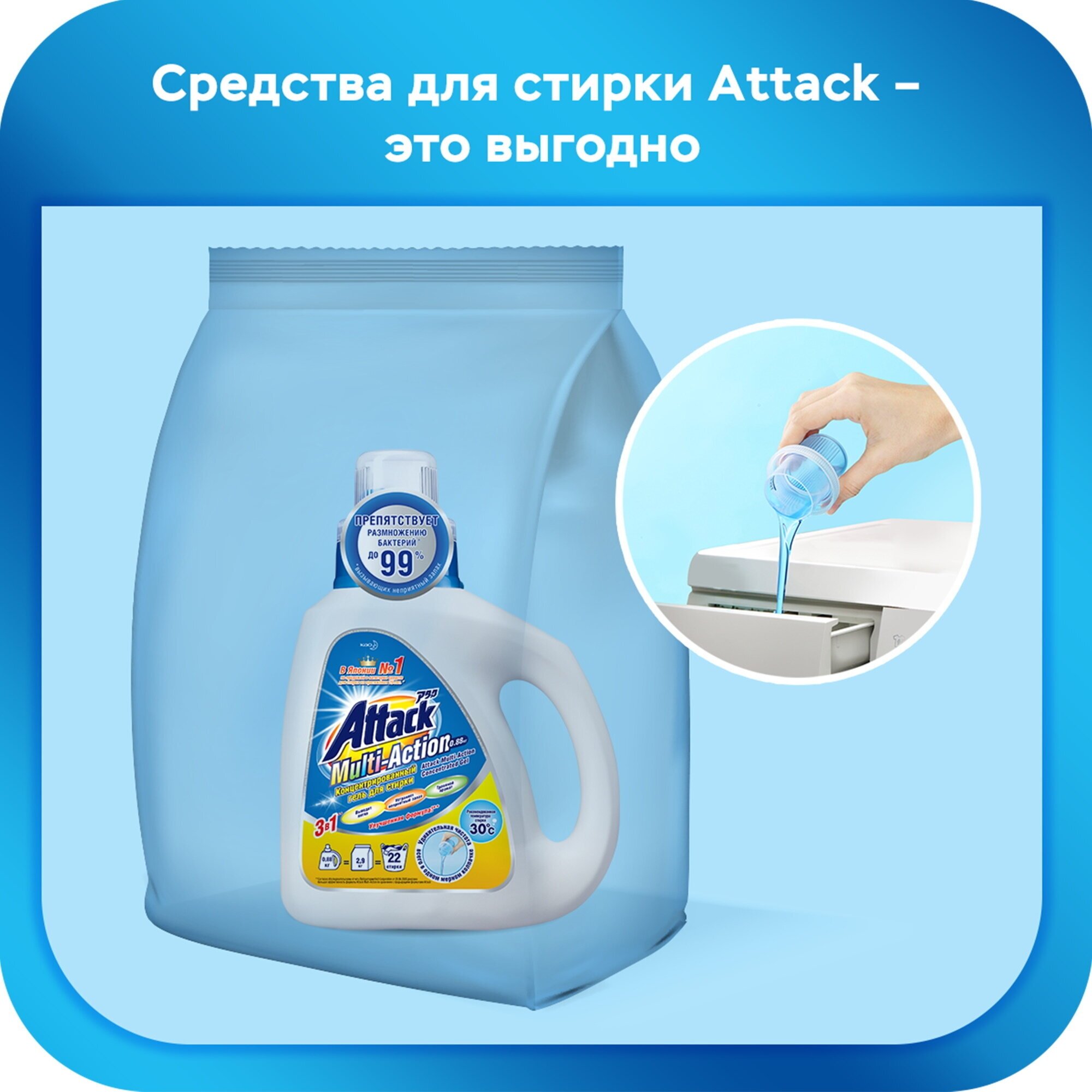 Описание товара:Уникальные запатентованные технологии – основа продукции Attack. Технология на основе энзимов позволяет эффективно устранять загрязнения даже при стирке в холодной воде. Благодаря гранулам, содержащим воздух, средство быстро растворяется в холодной воде и хорошо вымывается, не оставляя мелких частиц, раздражающих кожу.Состав товара:15-30% цеолит, 5-15% анионактивные ПАВ, неионогенные ПАВ, поликарбоксилат, больше 5% мыло, энзимы, отдушка, оптический отбеливатель.Меры предосторожности:Не подходит для стирки шерсти и шелка, рекомендуемая температура стирки 30-40°С, не рекомендуется стирка с превышением дозировки средства, особенно при температуре выше 60°С. Используйте средство только по назначению. Храните в местах, недоступных для детей. Храните с закрытой крышкой в сухом, прохладном и темном месте. Используйте перчатки, если у вас чувствительная кожа.Способ применения:При машинной стирке: 1. Загрузка 4,5 кг - обычное загрязнение 40 г (3/4 ложечки), сильное загрязнение 57 г (1 ложечка). 2. Загрузка 2 кг - обычное загрязнение 24 г (1/2 ложечки), сильное загрязнение 28 г (4/7 ложечки). Ручная стирка: 24 г на 5 л (при замачивании - замачивайте 30-60 мин, затем стирайте в стиральной машине).