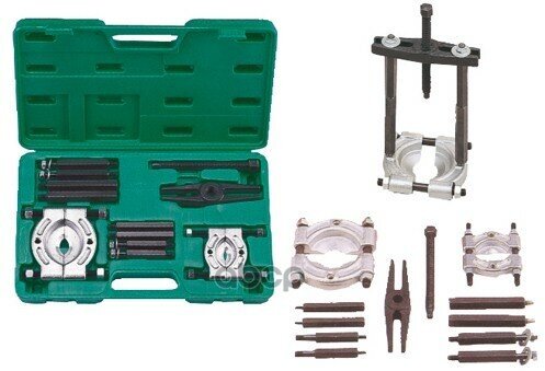 Набор съемников-сепараторов с комплектом элементов для сборки тянущей части, обеспечивающей применение съемников на демонтируемой детали, расположенной на расстоянии до 125 мм от опорной поверхности. Рабочий диапазон сепараторов 50-75 и 75-105 мм. Захваты изделия изготовлены, методом ковки, из легированной углеродистой стали, закаленной до твердости HRC 42-45. Детали тянущей части, из углеродистой стали, обеспечивающей надежность конструкции. Для удобства, детали набора хранятся в оригинальном металлическом ящике.