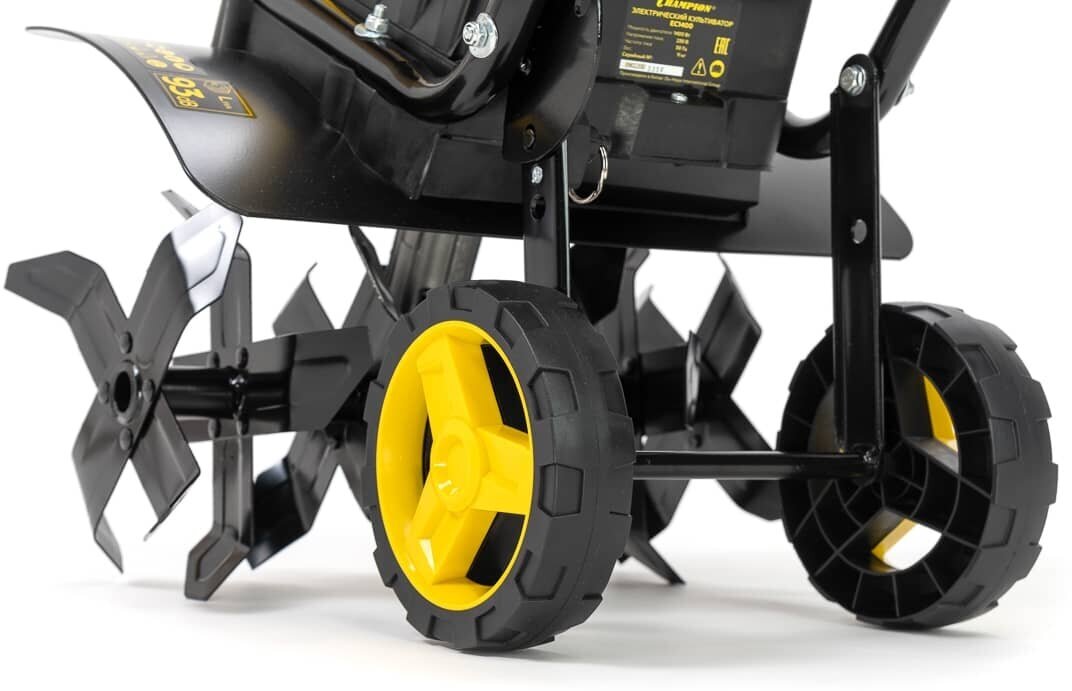 Культиватор Champion благодаря электрическому мотору почти не издает шум при работе. Для того чтобы уменьшить количество оборотов мотора до рабочих значений, в конструкции применен металлический понижающий червячный редуктор. Для смазки в редуктор заправляется высокотемпературный вязкий наполнитель EP0. Культиватор Champion позволяет легко обрабатывать клумбы, цветники и даже почву в крытых теплицах, так как культиватор не имеет вредных выхлопов. Культиватор Champion рекомендуется использовать для обработки 5 соток ранее вскопанной почвы.