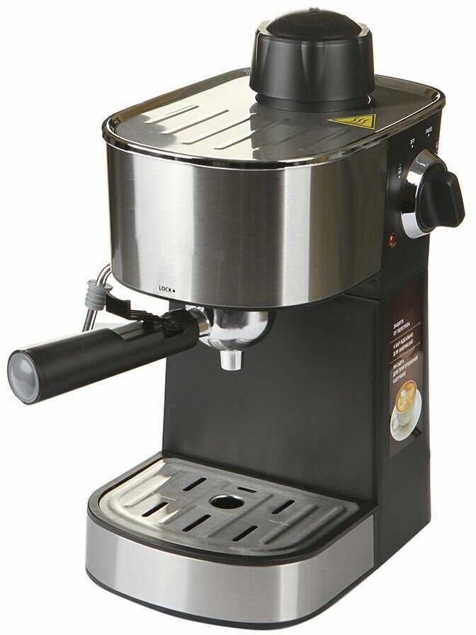 | Комплект поставки | Кофеварка рожковая, прозрачный резервуар для воды, съемный поддон, трафареты для рисунков на молочной пене, мерная ложечка, книга "Идеи для кофе", документация |