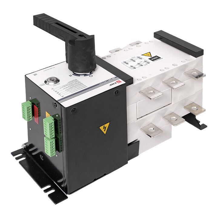 ОПИСАНИЕ. Устройство АВР ТСP1 EKF PROxima предназначено для обеспечения резервным электроснабжением нагрузки, подключенной к системе электроснабжения, имеющей основной и резервный вводы. Устройство АВР автоматически подключает резервную линию питания в случае пропадания напряжения на основной линии. Конструкция и принцип действия: Устройство АВР ТСP1 EKF PROxima выполнено в виде моноблока и состоит из контактного блока и блока управления. На блоке управления имеется рычаг ручного переключения, замковый механизм перевода в ручной или автоматический режимы управления и запорный механизм, обеспечивающий блокировку переключения устройства АВР. Корпус контактного блока выполнен из термостойкой АВС пластмассы. Механизм переключения обеспечивает перемещение контактных групп мостикового типа, которые замыкают цепи или основной линии, или резервной линии, также предусмотрено положение, когда обе линии отключены. В металлическом корпусе блока управления смонтирован электромотор приводной механизм и реле управления. Реле управления запитано от линии L3 основного ввода. При наличии напряжения на линии L3 основного ввода реле управления подает напряжение на электромотор, который обеспечивает замыкание контактных групп основного ввода и отключается концевым выключателем после замыкания главных контактов. Попытка ручного переключения ввода приведет к включению электромотора управления, который вернет питание от основного ввода. При пропадании напряжения на основном вводе реле управления подаст напряжение от резервного ввода на электромотор управления. Работа устройства АВР от резервного ввода аналогична работе устройства АВР от основного ввода. При появлении напряжения на основном вводе устройство АВР автоматически переключится на основной ввод. ПРЕИМУЩЕСТВА. Ручная блокировка включения. Простое исполнение. Ручной и автоматический режимы. Коммутационный механизм реверсивный рубильник. ПРИМЕНЕНИЕ. Обязательное резервирование нагрузки для потребителей I категории: больницы; крупное металлургическое производство (например, доменная печь, установки непрерывной разливки стали); транспортная инфраструктура; объекты Министерства обороны; тепловые станции; противопожарные системы; сельскохозяйственные фермы.
