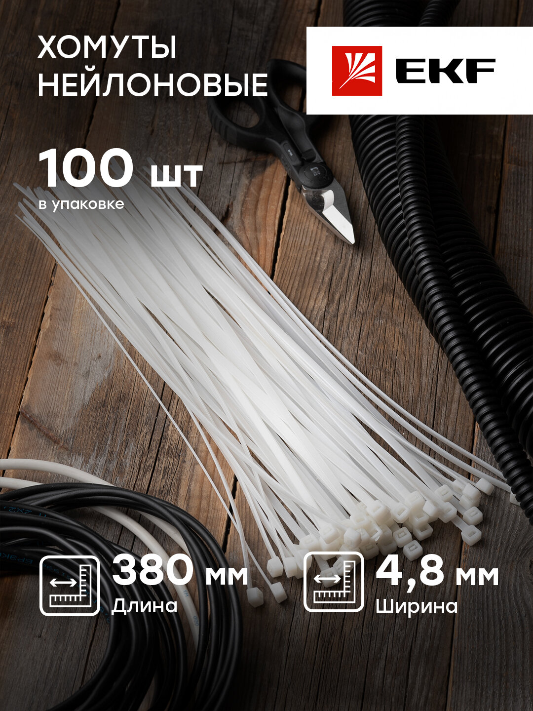plc-c-4.8x380 Хомут нейлоновый (48х380) (100шт.) Basic EKF