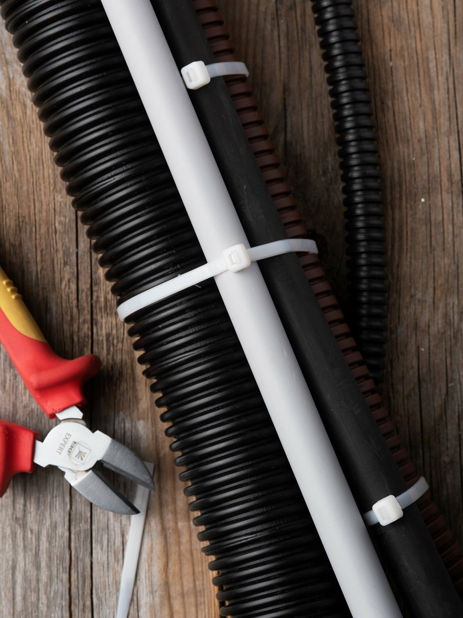 Предназначен для увязки кабелей и проводов в пучок и монтажа кабельных линий и проводников. Ремешок самофиксирующийся, блокирующий механизм. Изготовлен из Nylon 6.6, устойчивого к старению, коррозии, воздействию солей, ультрафиолета, кислот, щелочей, спирта, бензина и масел. При производстве кабельных стяжек черного цвета добавляется угольный порошок, который является одним из наиболее эффективных стабилизаторов. Он улучшает физические свойства продукции в стойкости к погодным условиям и УФ-излучению (прямые солнечные лучи). ПРЕИМУЩЕСТВА. Увеличенная ширина рабочей части. Материал: нейлон 6.6, самозатухающий, без галогенов. Надежный самофиксирующийся замок. Обеспечивают прочную и надежную связку. ПРИМЕНЕНИЕ. Предназначены для бандажирования и увязки проводов и кабелей в закрытых помещениях и на открытом воздухе.