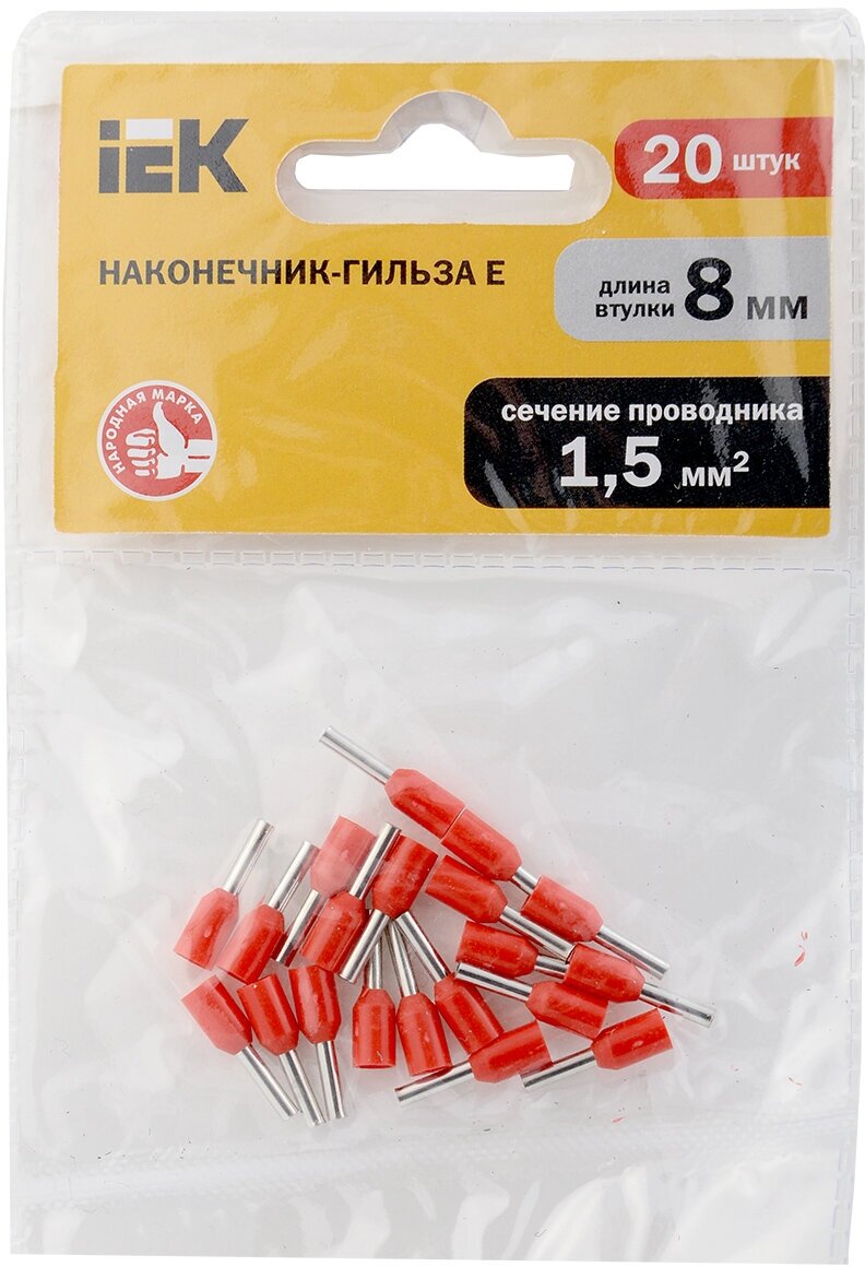UGN10-4-D15-03-08 Наконечник-гильза Е1508 15мм2 (красный 20шт) ИЭК Упаковка (120 шт.) IEK