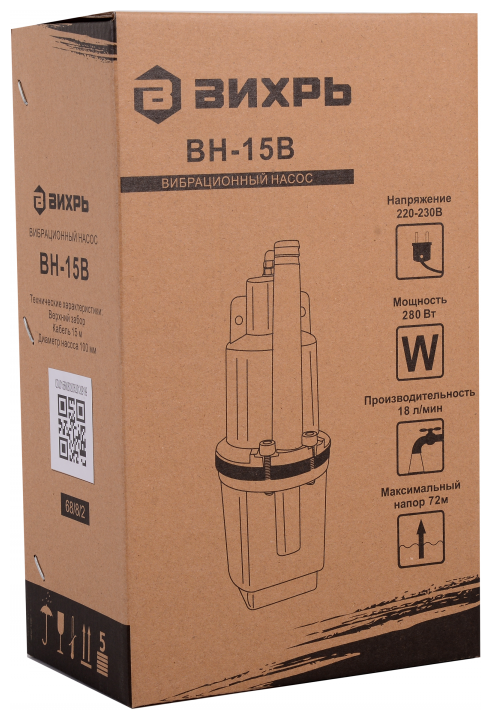 Благодаря качественному современному исполнению передовой вибрационный насос Вихрь отлично подходит для эксплуатации в самых разных условиях и может безопасно переносить агрессивное внешнее воздействие. Представленная модель для работы полностью погружается в воду; конструкция рассчитана на нижний забор воды. Подходит для бытового водоснабжения.