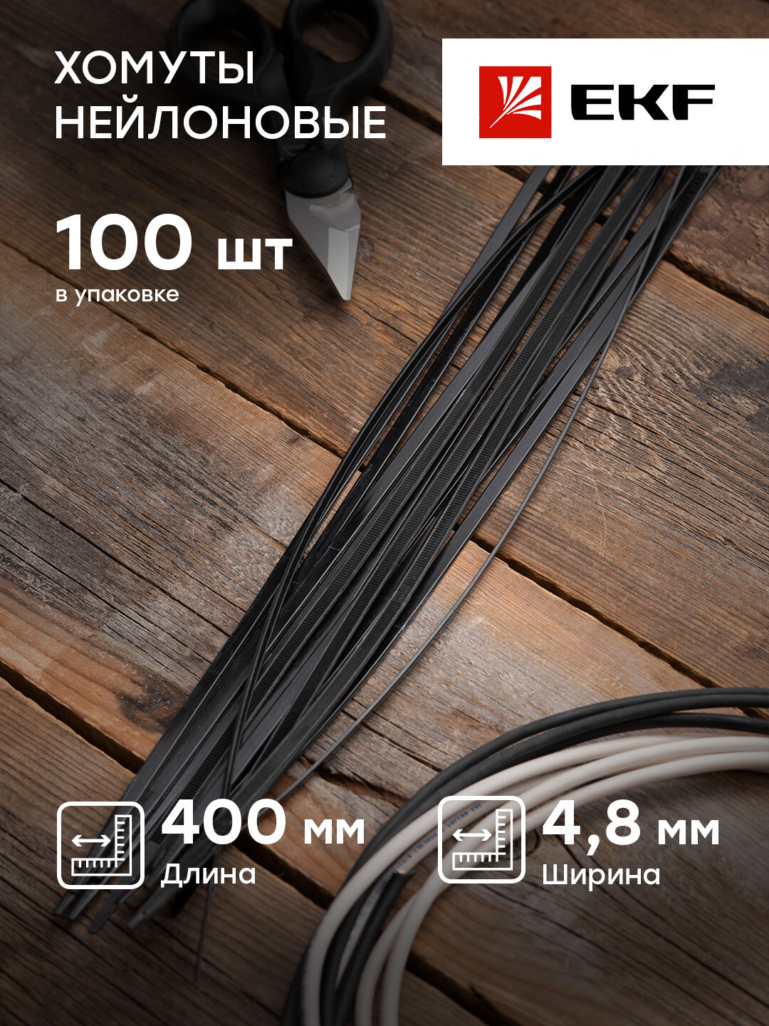 plc-cb-4.8x400 Хомут кабельный 4.8х400 нейл. черн. (уп.100шт) EKF